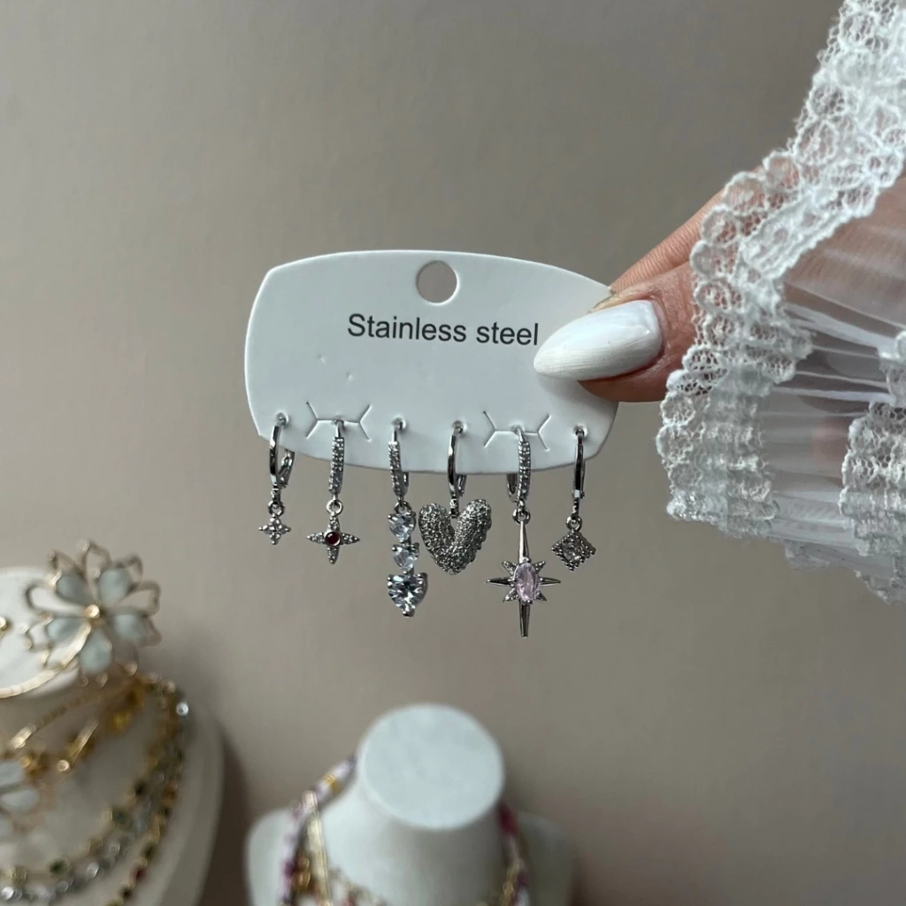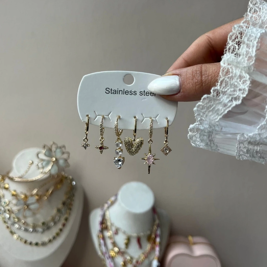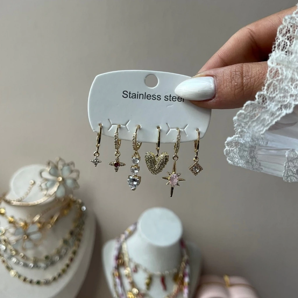 • 6'lı Pırlanta Kalpli Küpe Seti