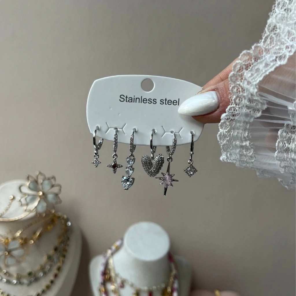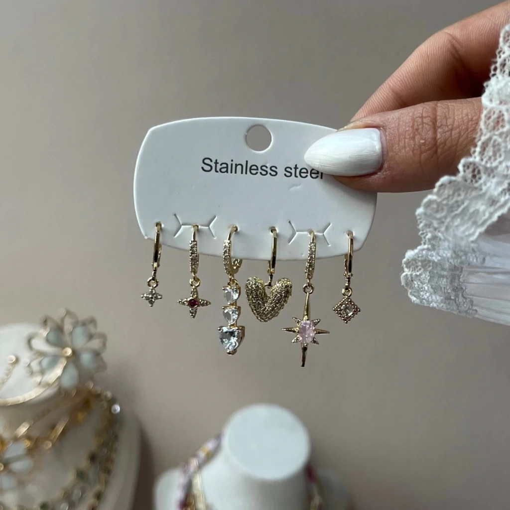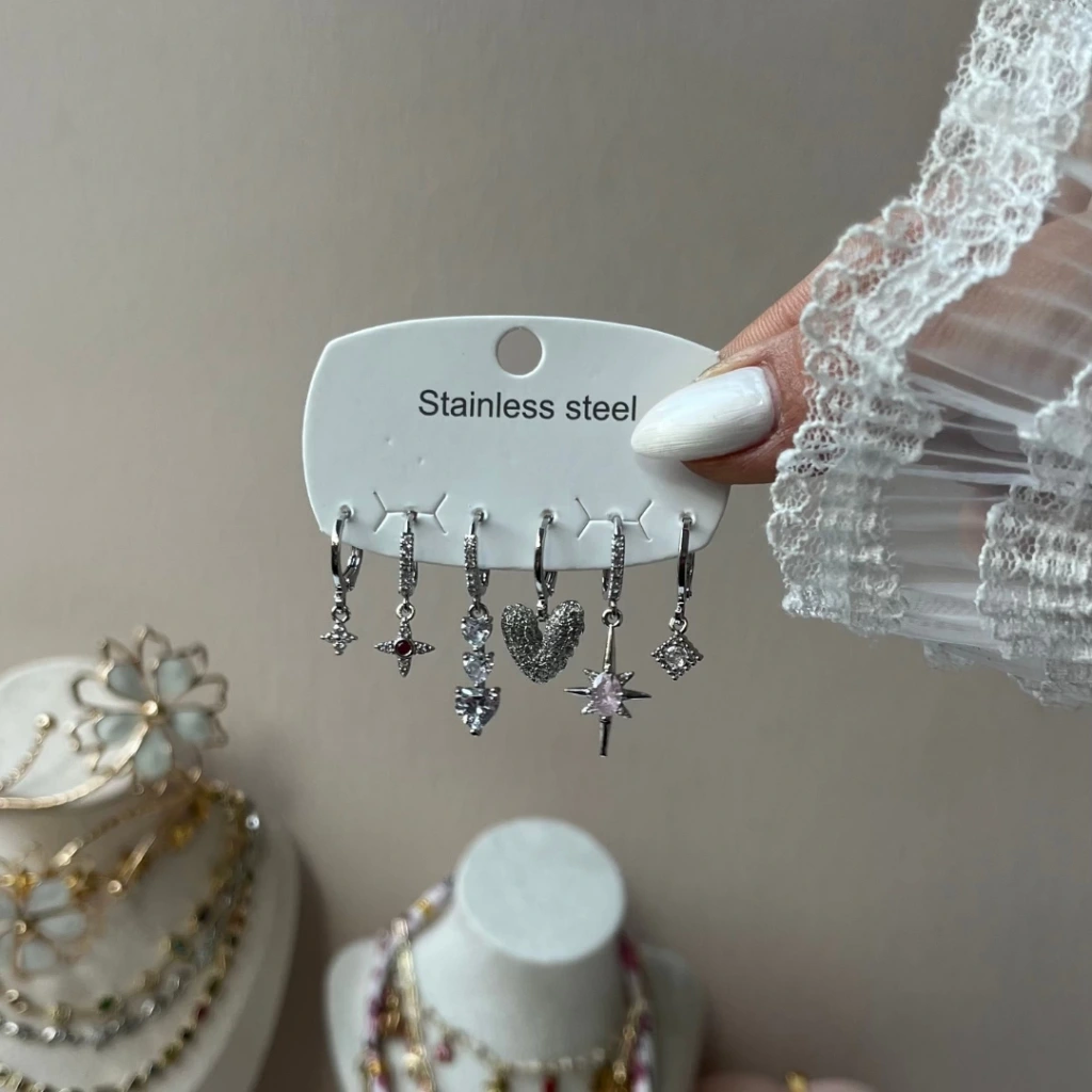 • 6'lı Pırlanta Kalpli Küpe Seti