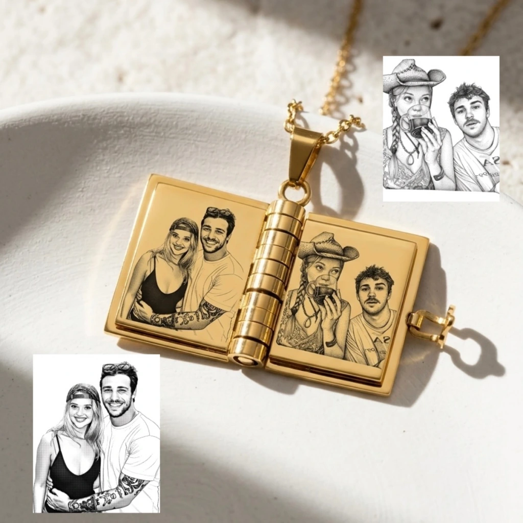 7 Sayfa Çizim Fotoğraflı Kitap Kolye