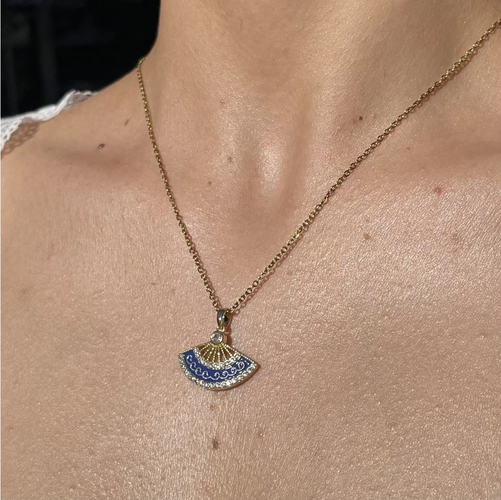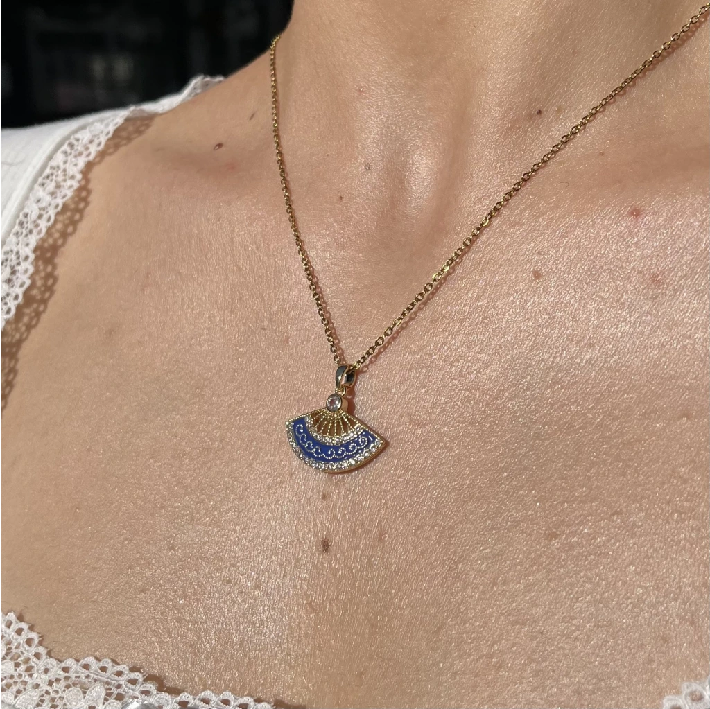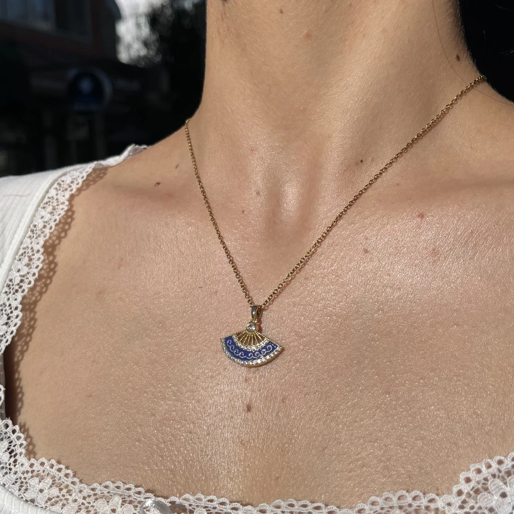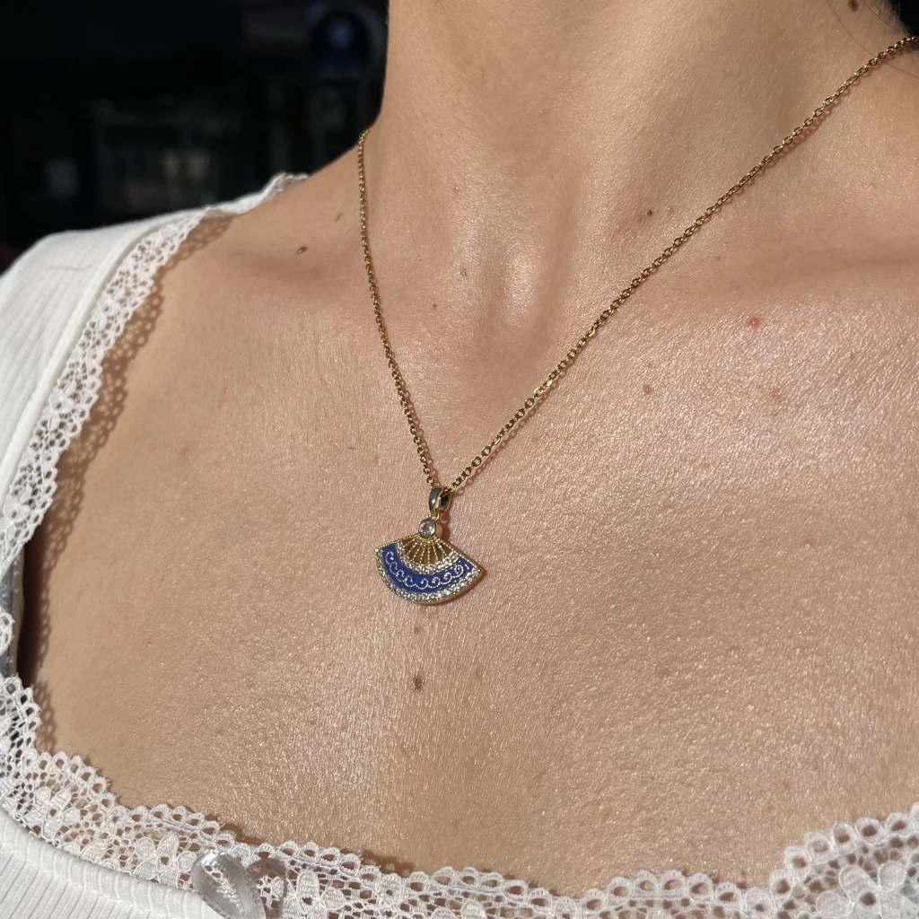 • Altın İşlemeli Mavi Yelpaze Kolye