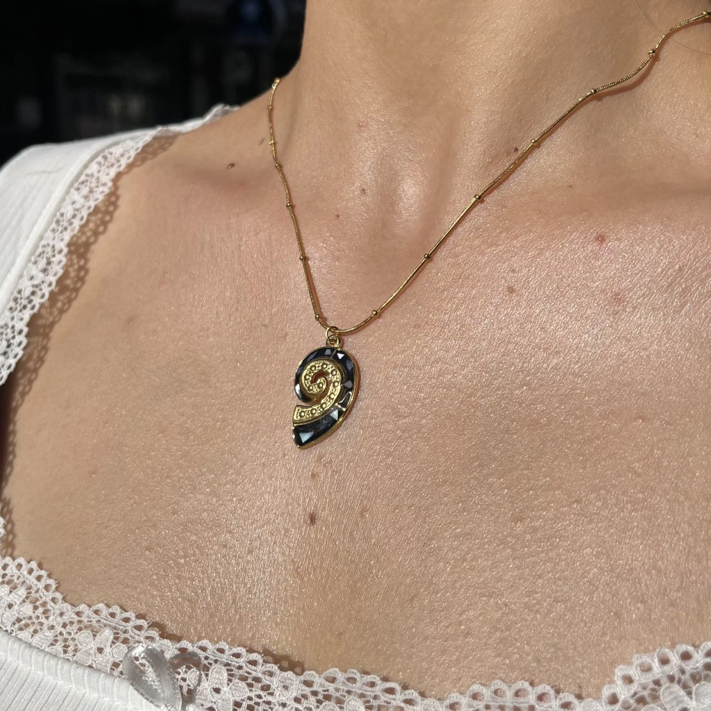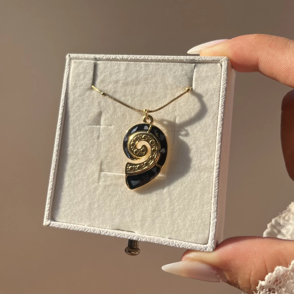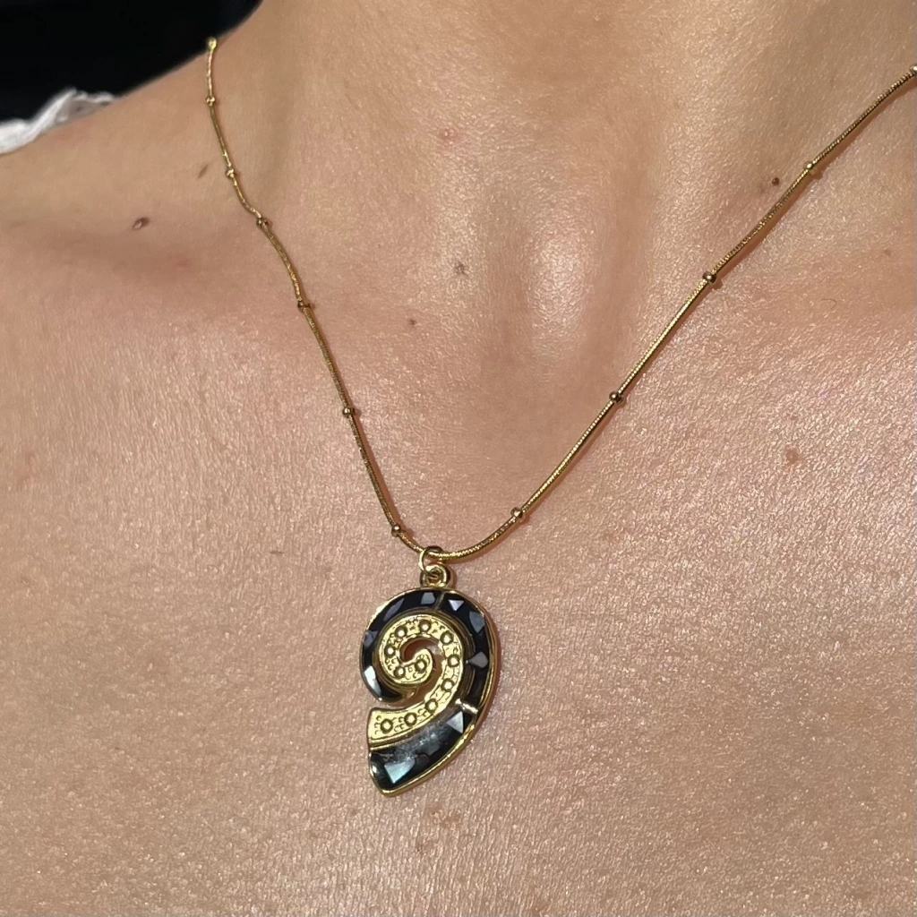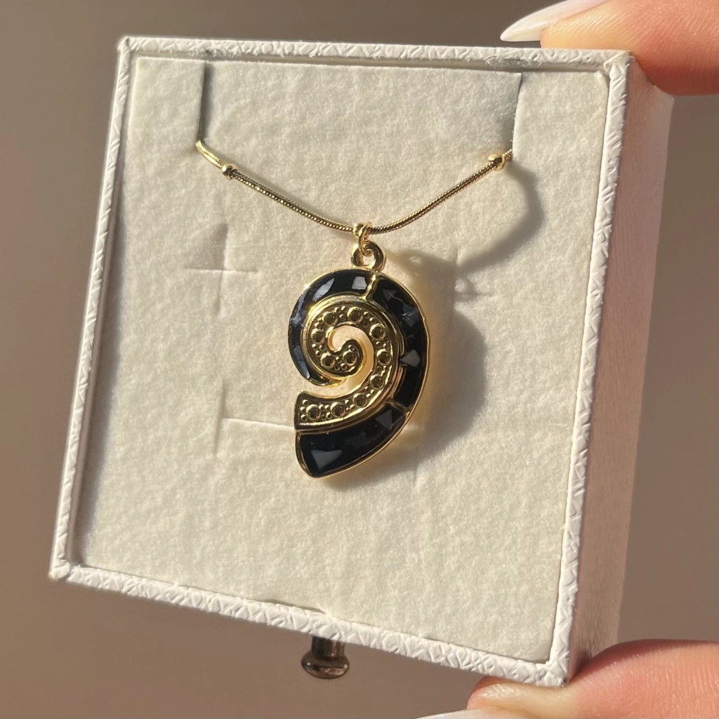 • Altın İşlemeli Siyah Deniz Kabuğu Kolye