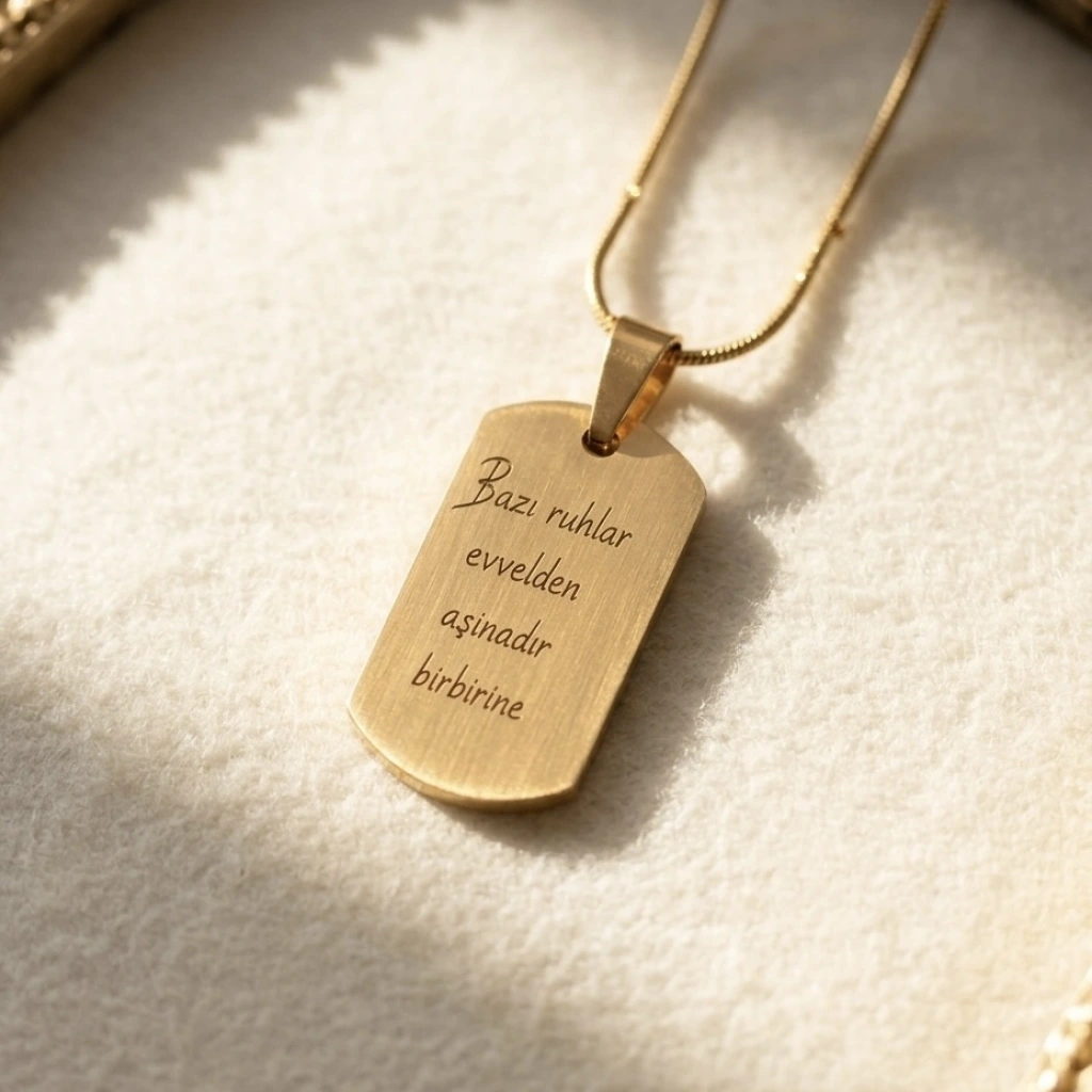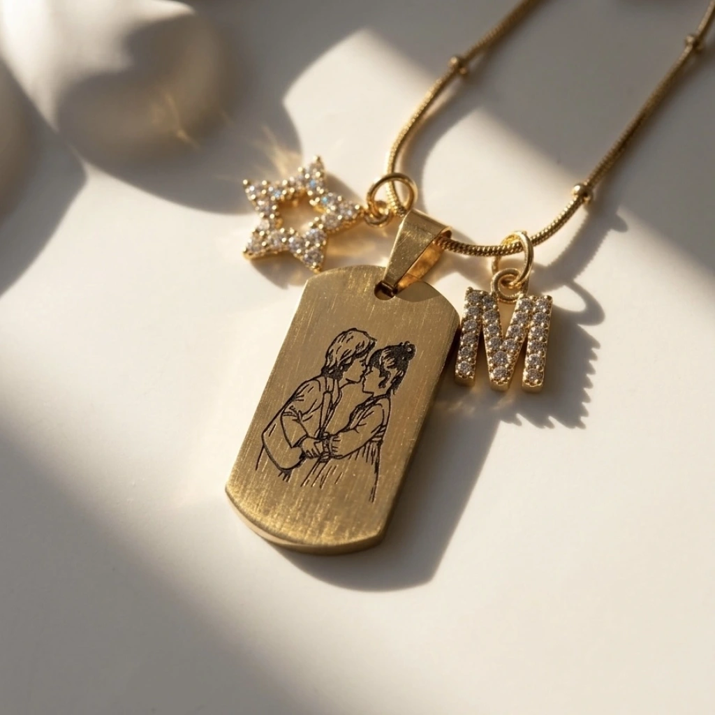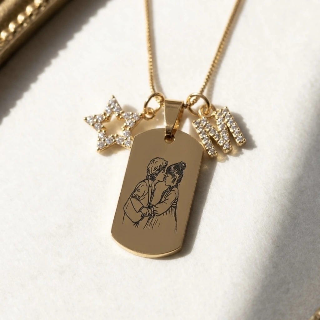 Arkası Yazılı Çizim Fotoğraflı Kolye