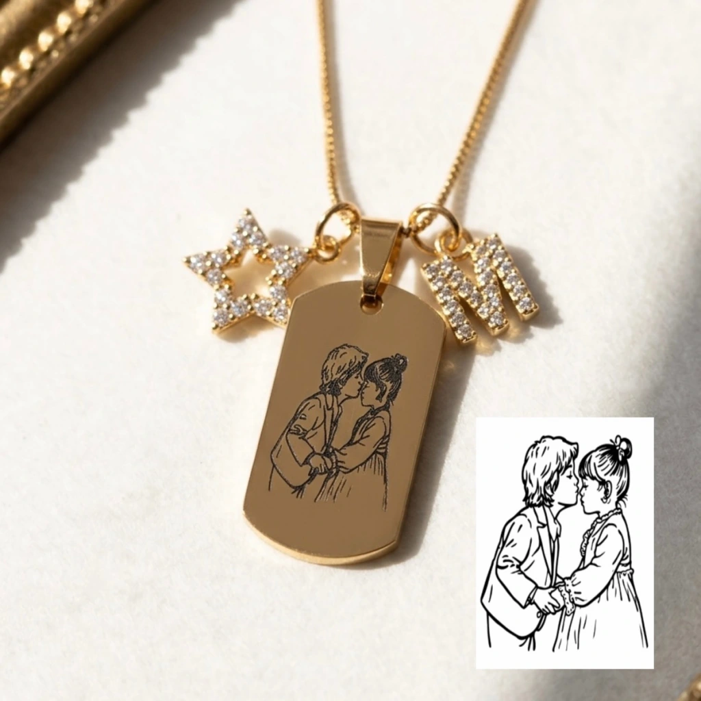 • Arkası Yazılı Çizim Fotoğraflı Kolye