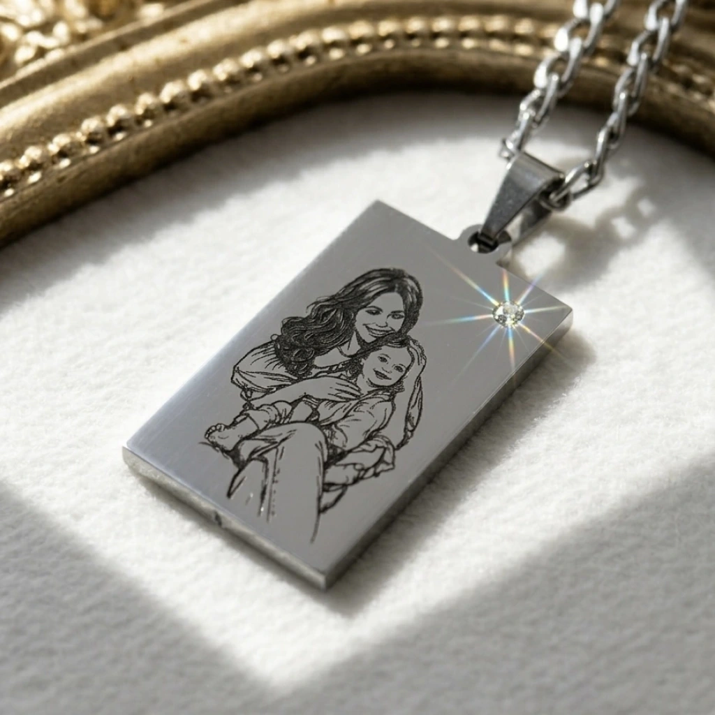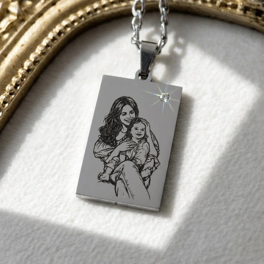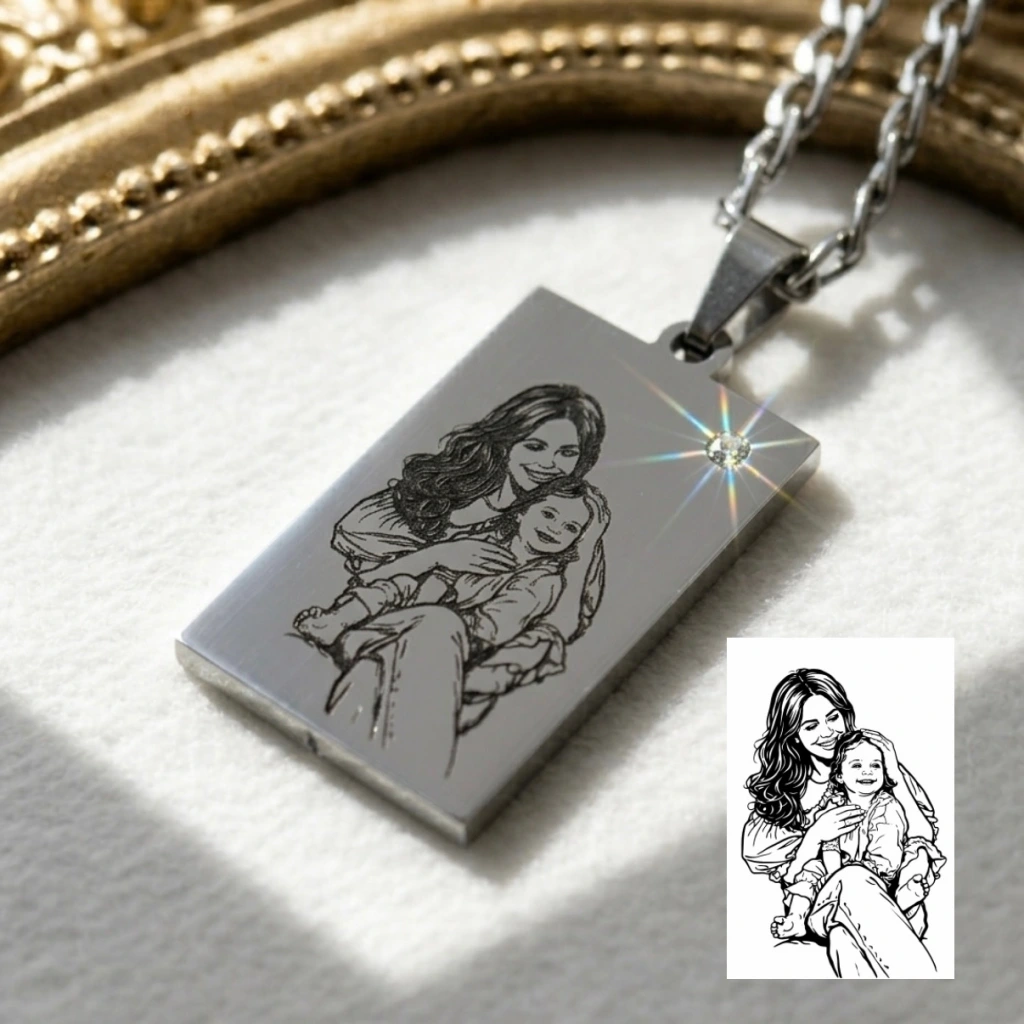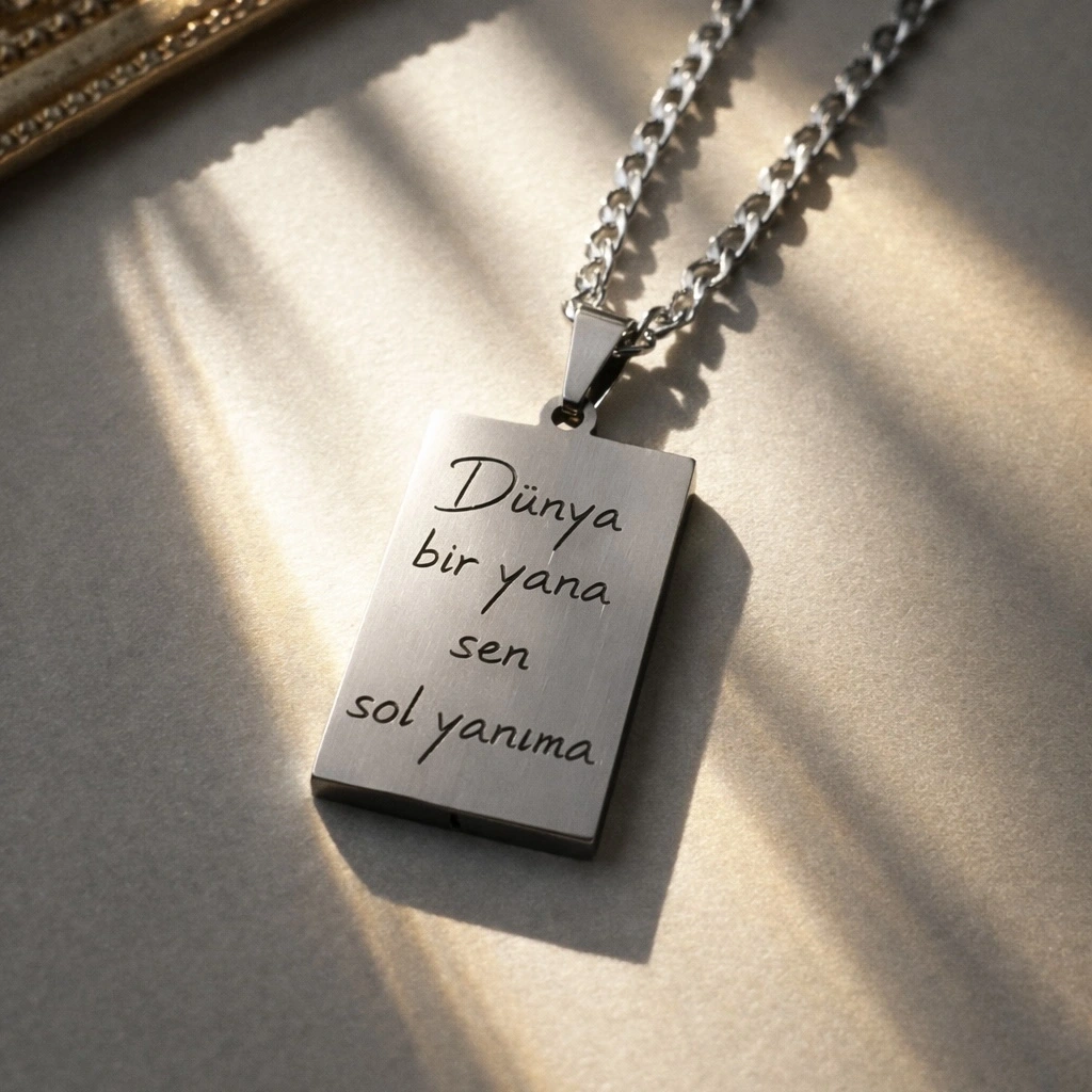 Arkası Yazılı Çizim Fotoğraflı Kolye