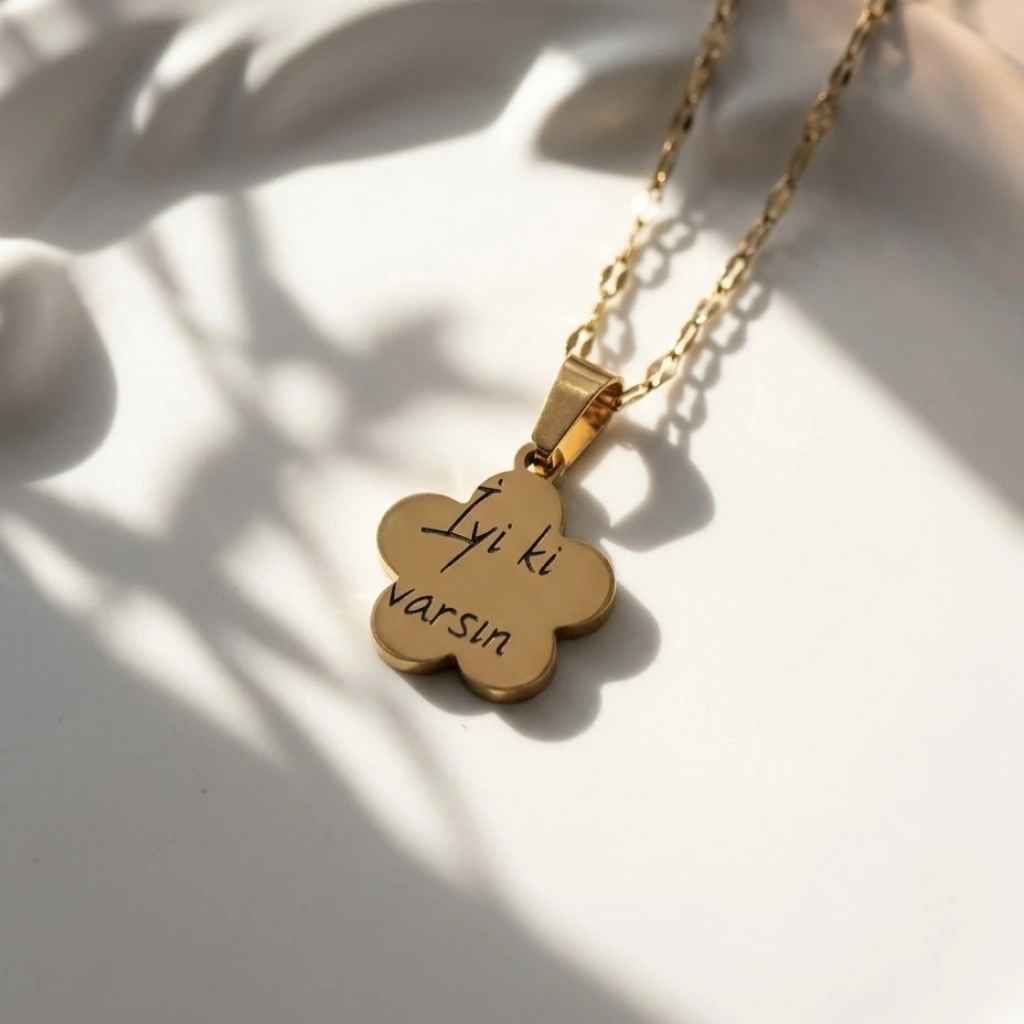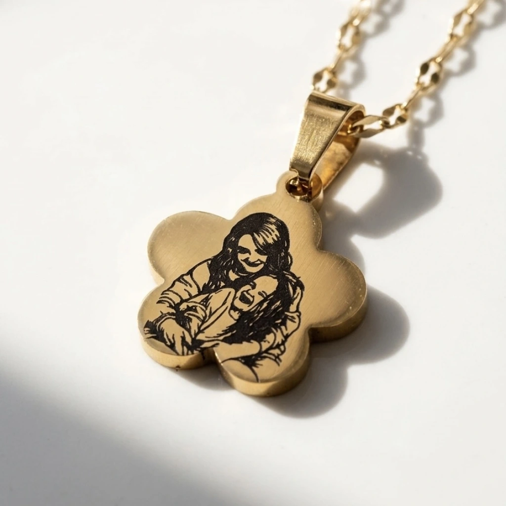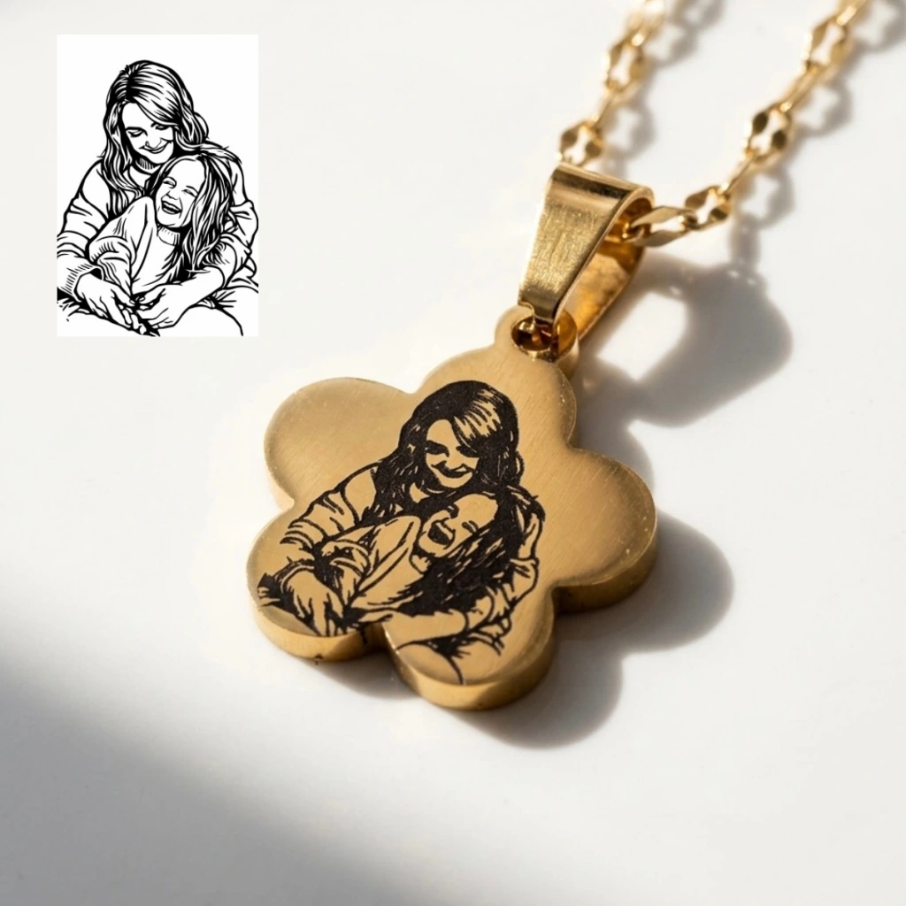 • Arkası Yazılı ve Çizim Fotoğraflı Kolye