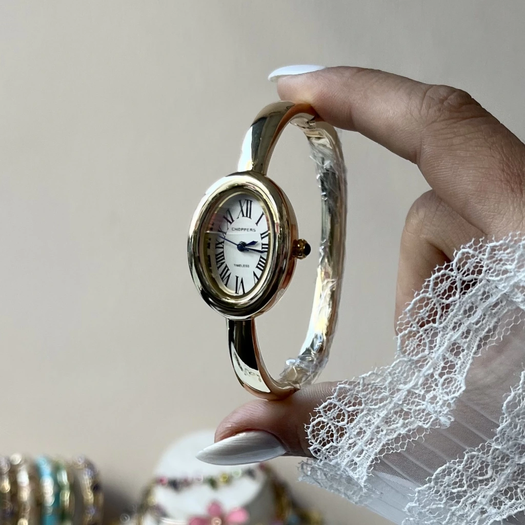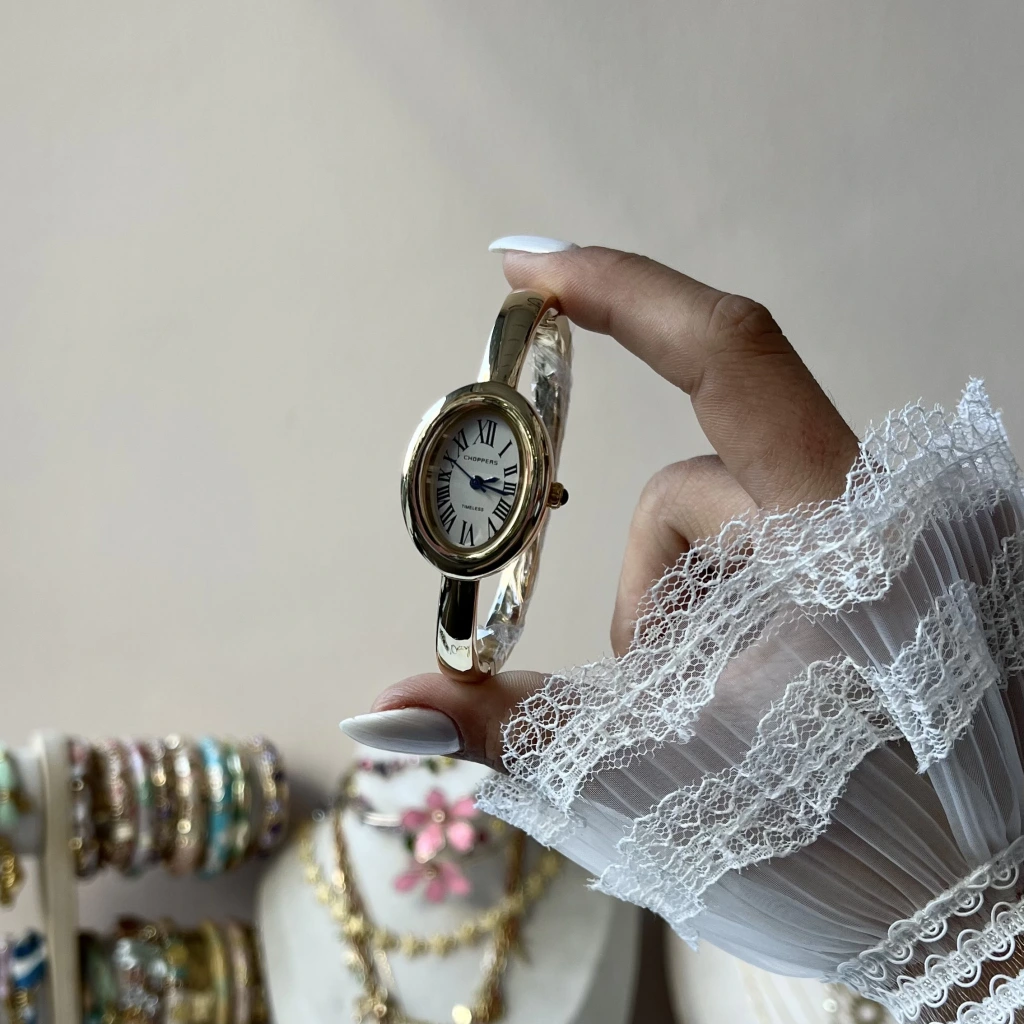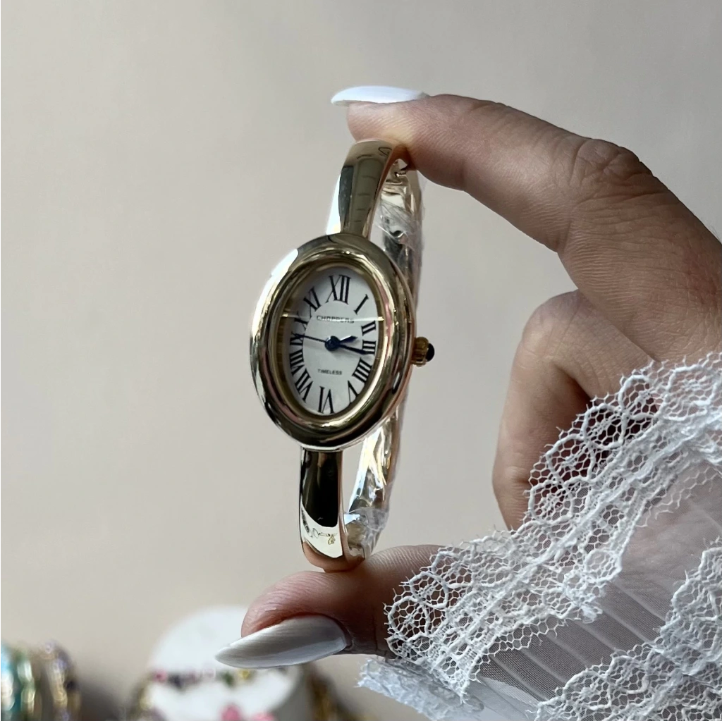 • Beyaz Oval Ekran Kelepçe Saat