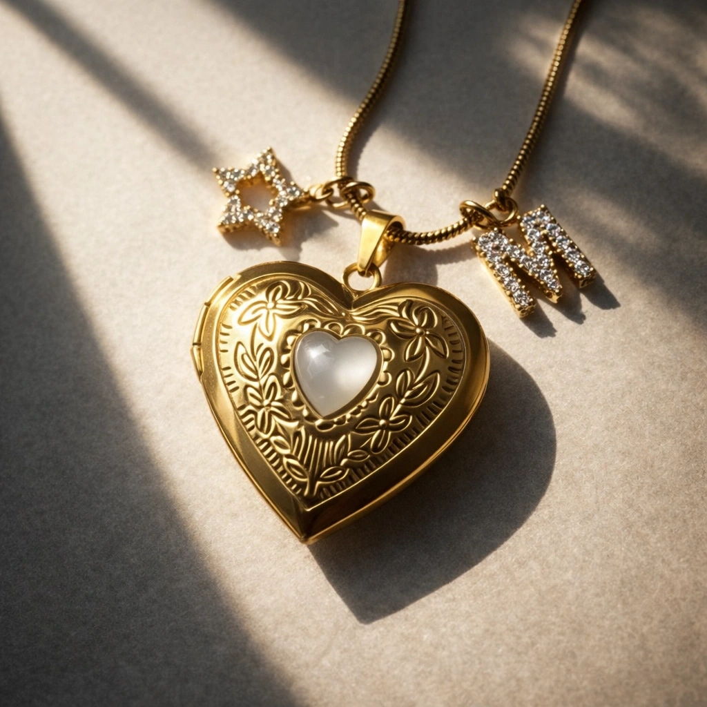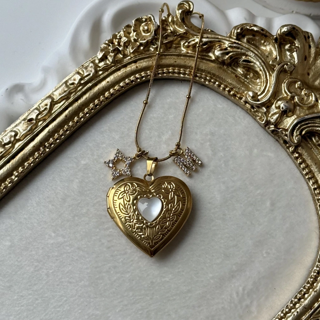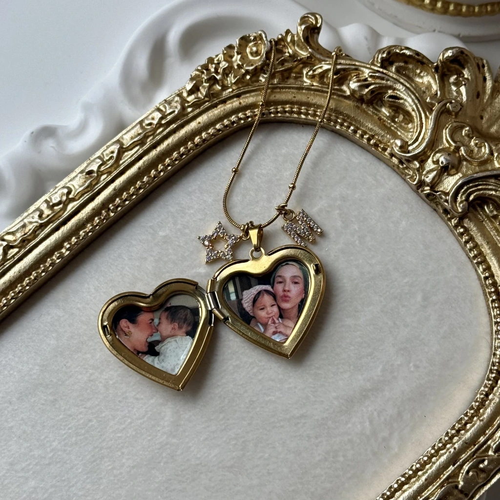 Çift Fotoğraflı İşlemeli Kapaklı Kalp Kolye | Çelik