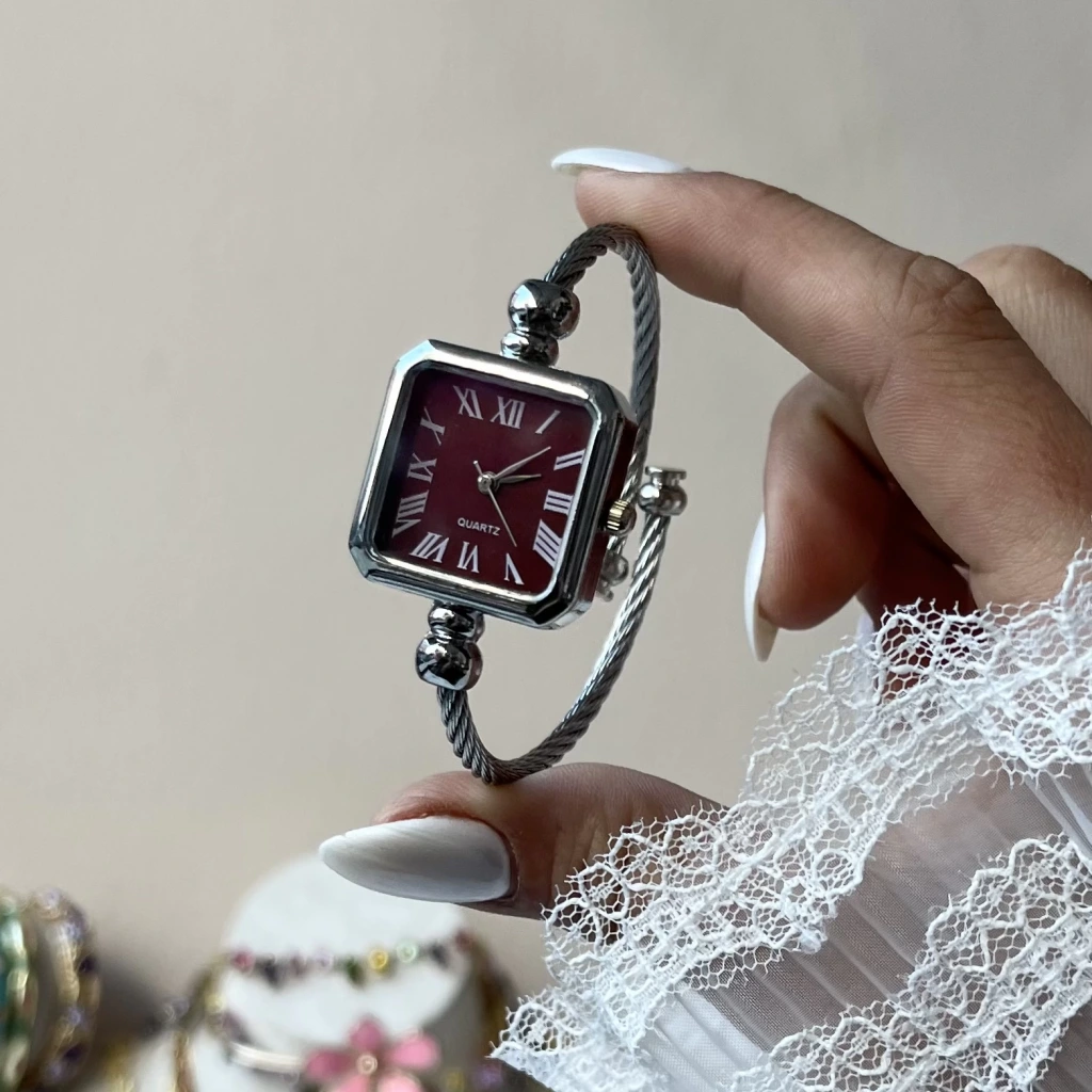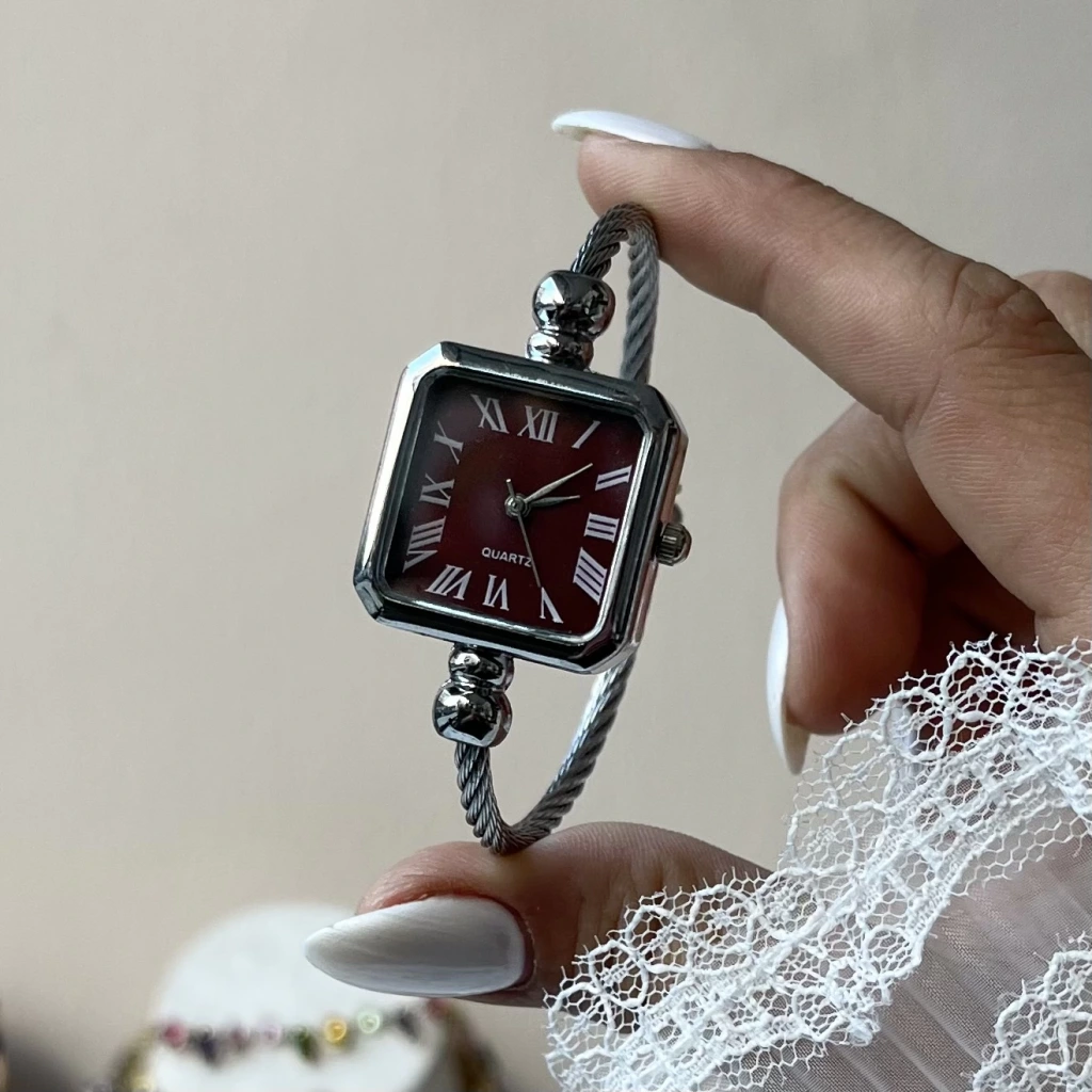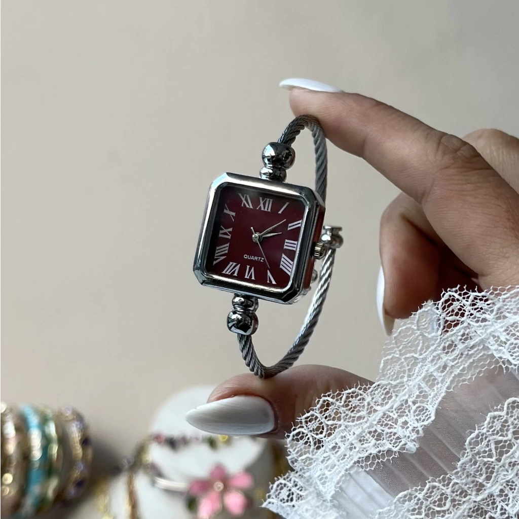 Bordo Kare Ekran Kelepçe Saat