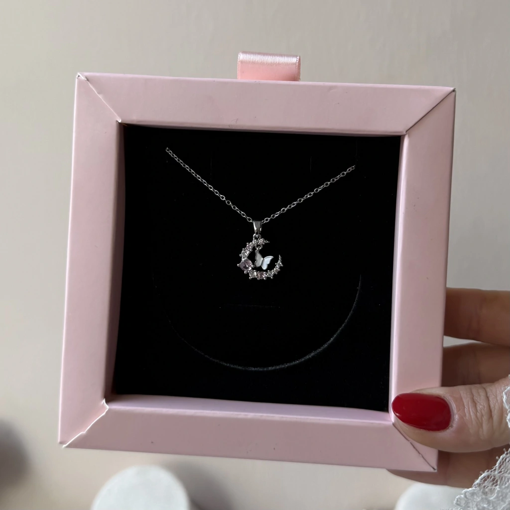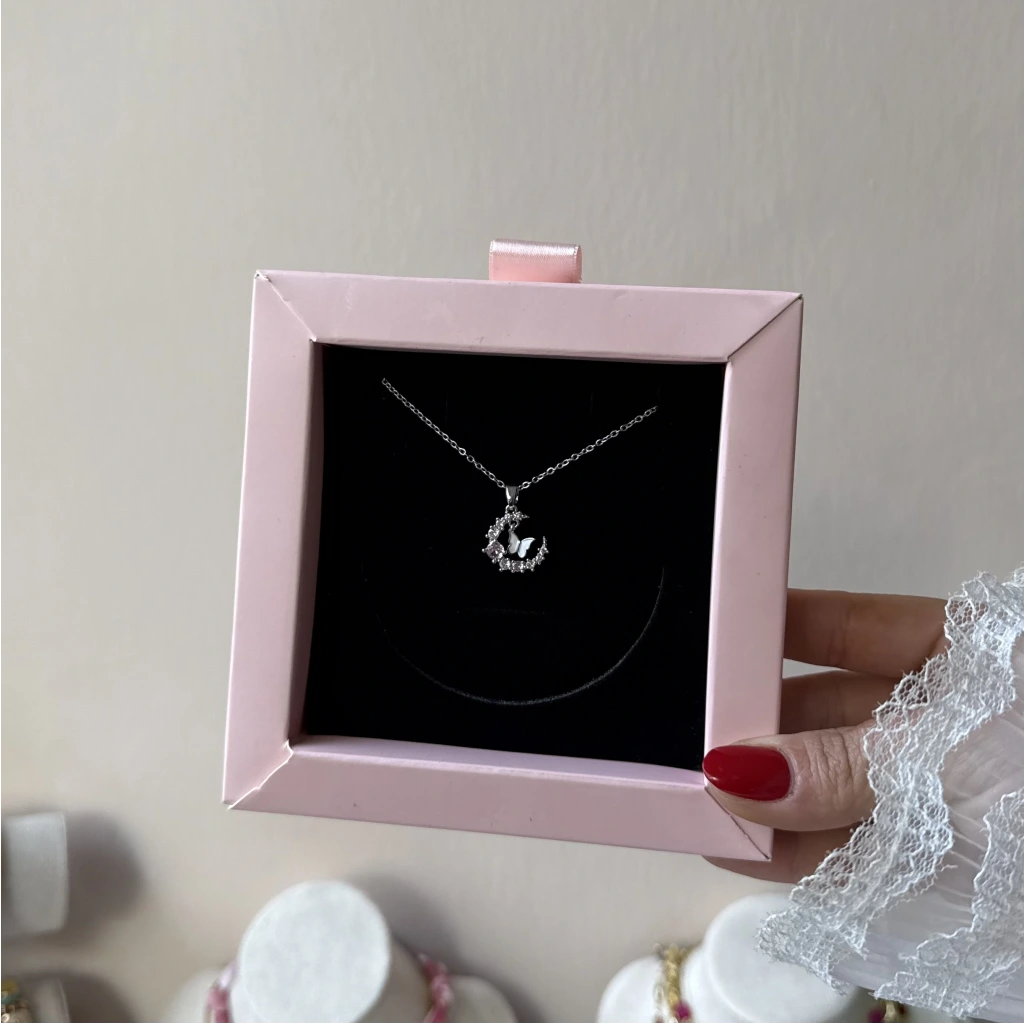 • Buz Pembesi Ay ve Kelebek Kolye