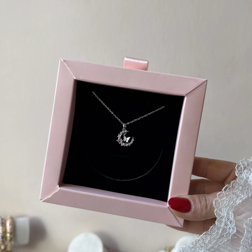 Buz Pembesi Ay ve Kelebek Kolye
