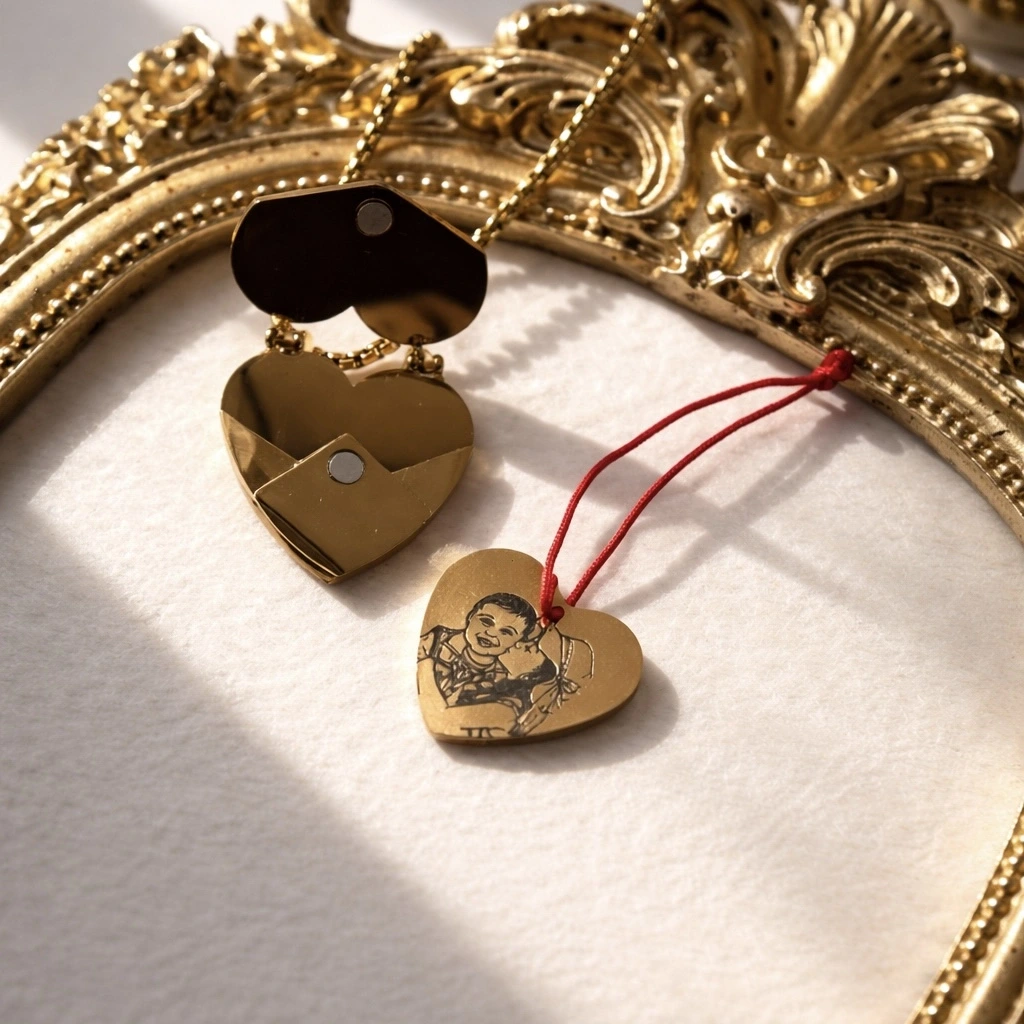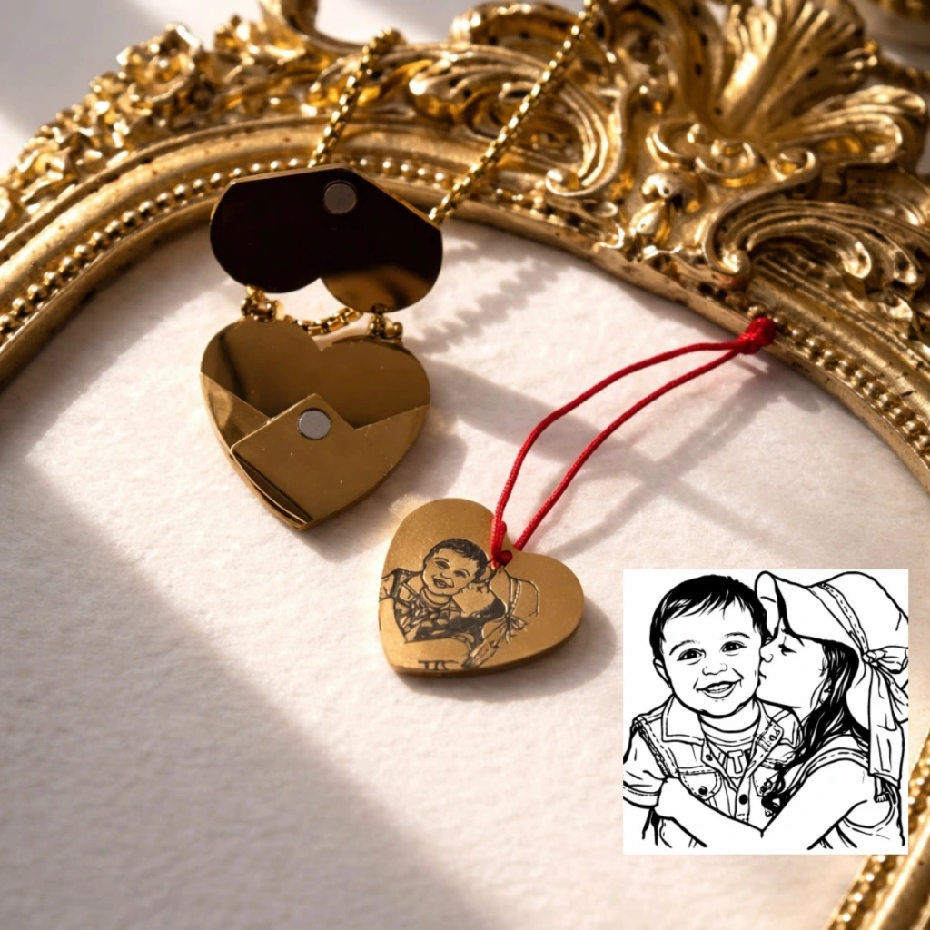 • Çizimli ve Yazılı Kalp Zarf Kolye