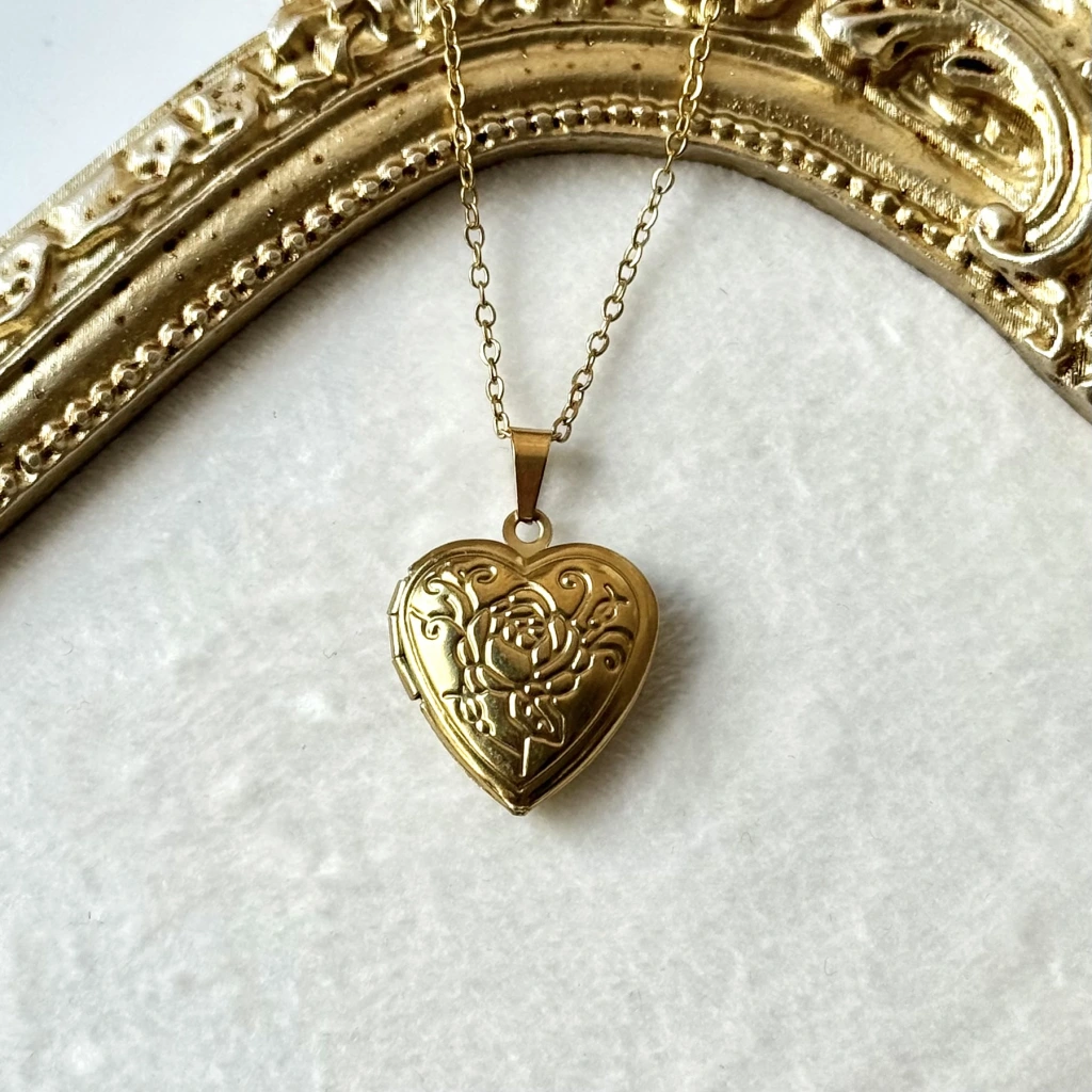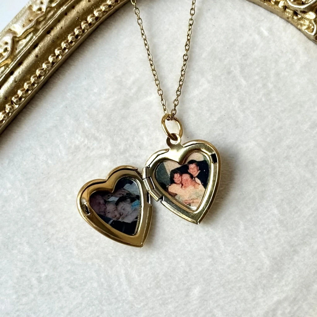 • Desenli Kalp Fotoğraflı Kapaklı Kolye
