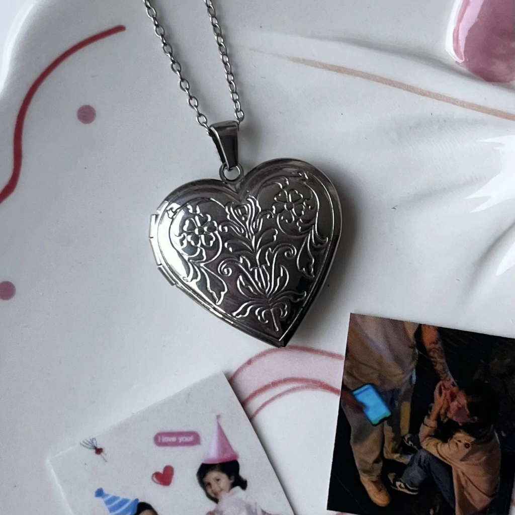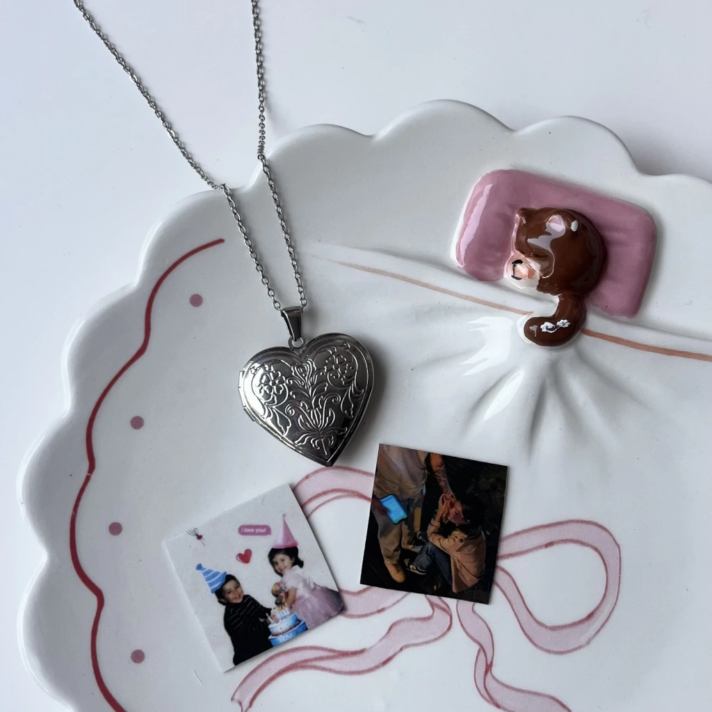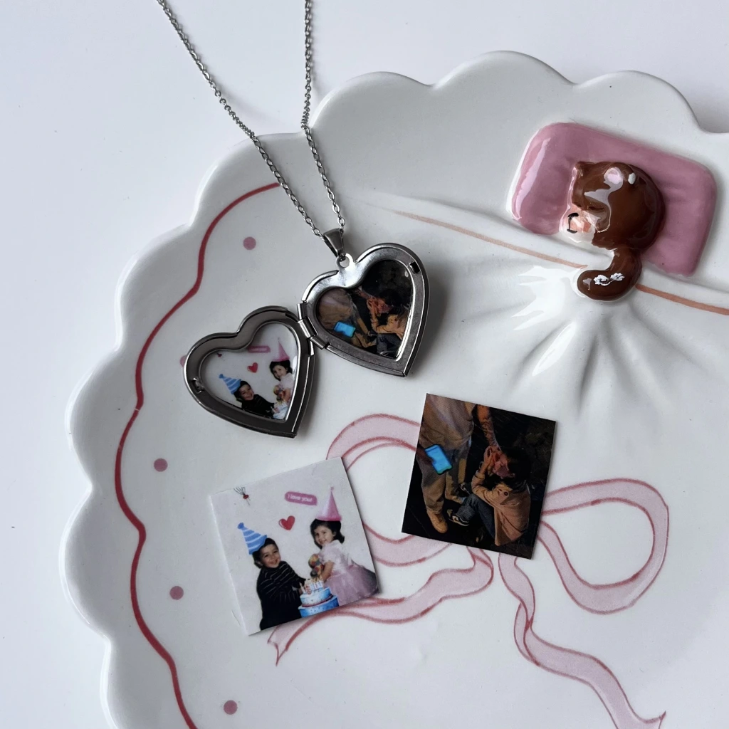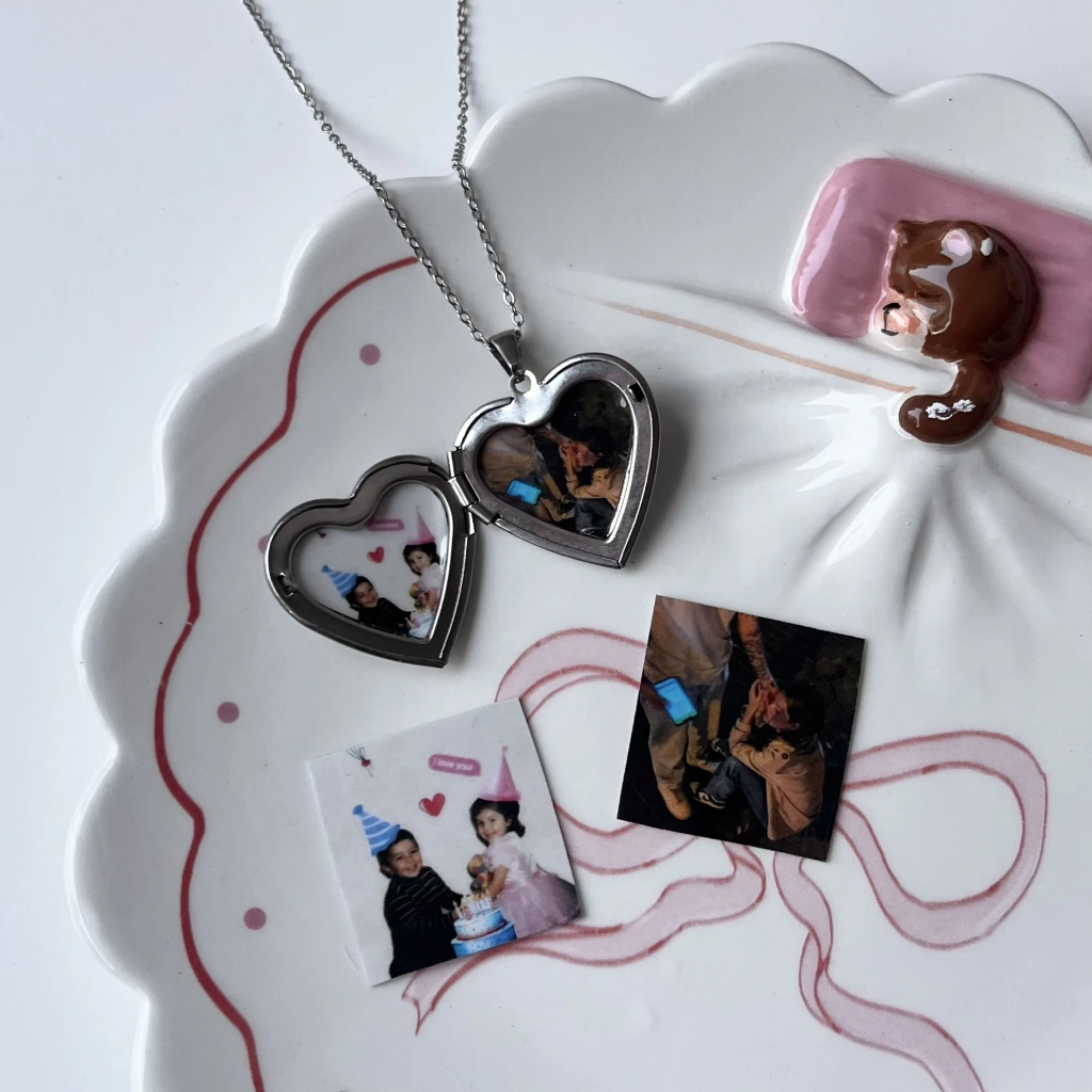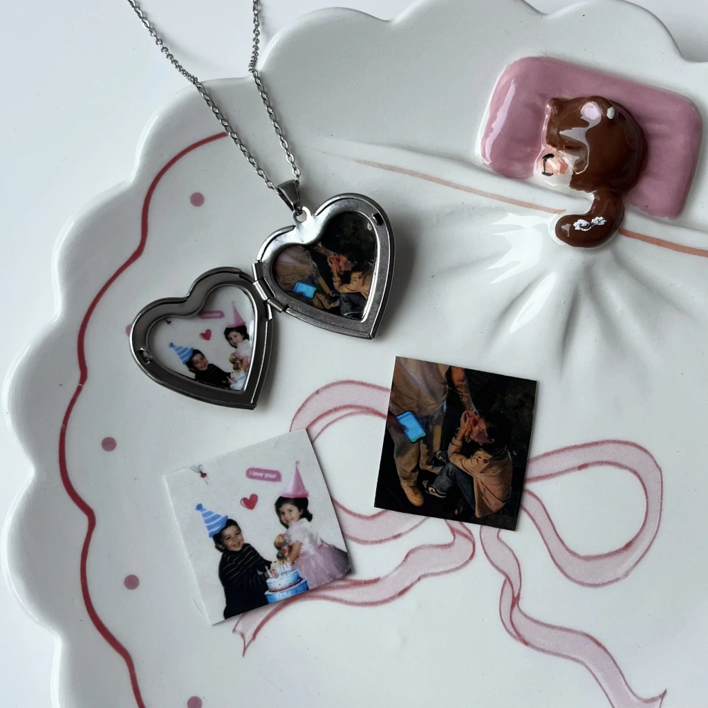 • Desenli Kapaklı Çift Fotoğraflı Kolye