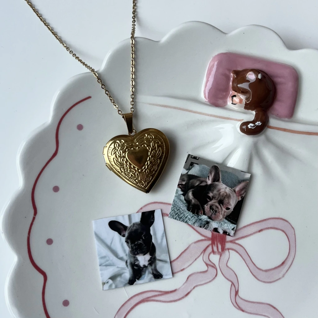 • Desenli Kapaklı Çift Fotoğraflı Kolye