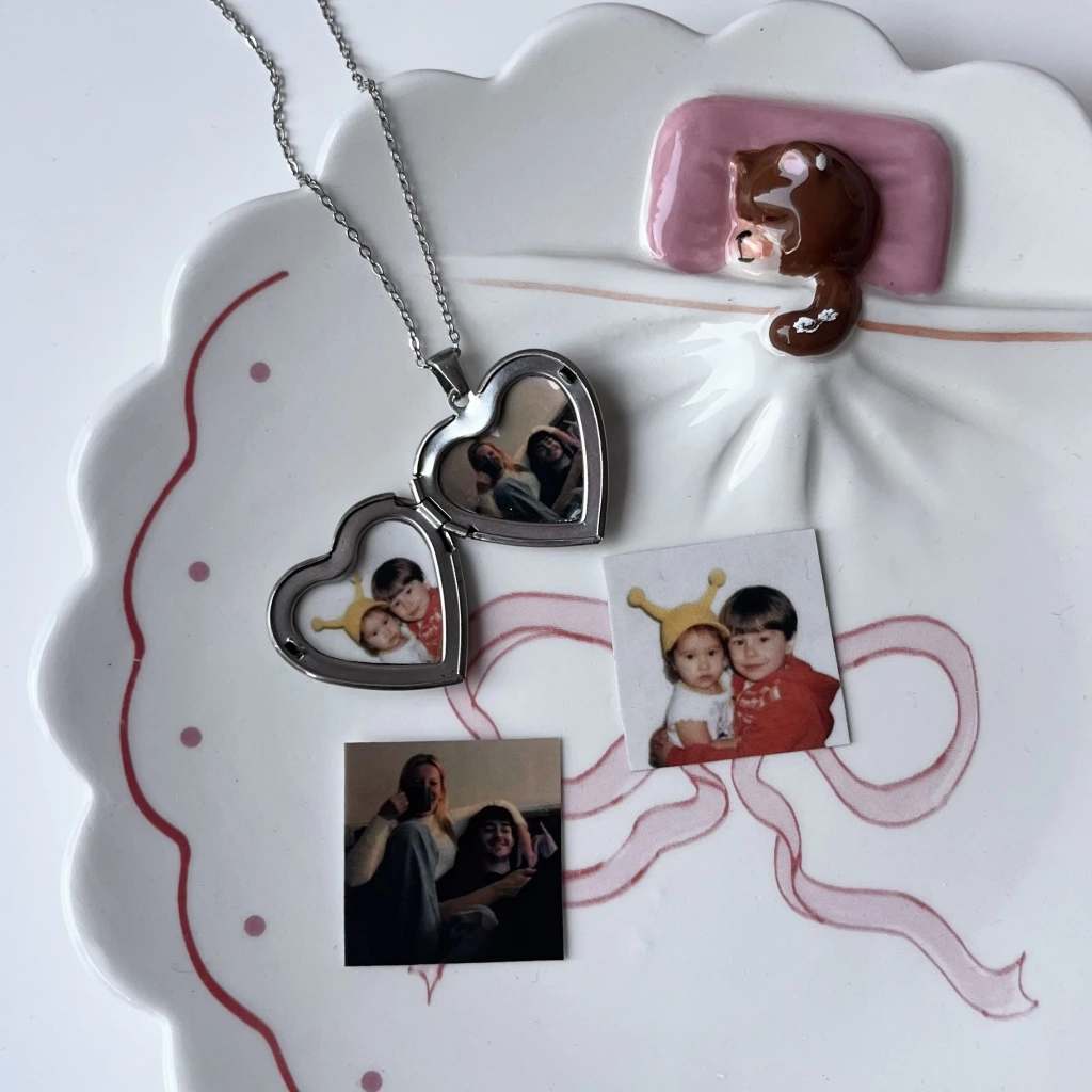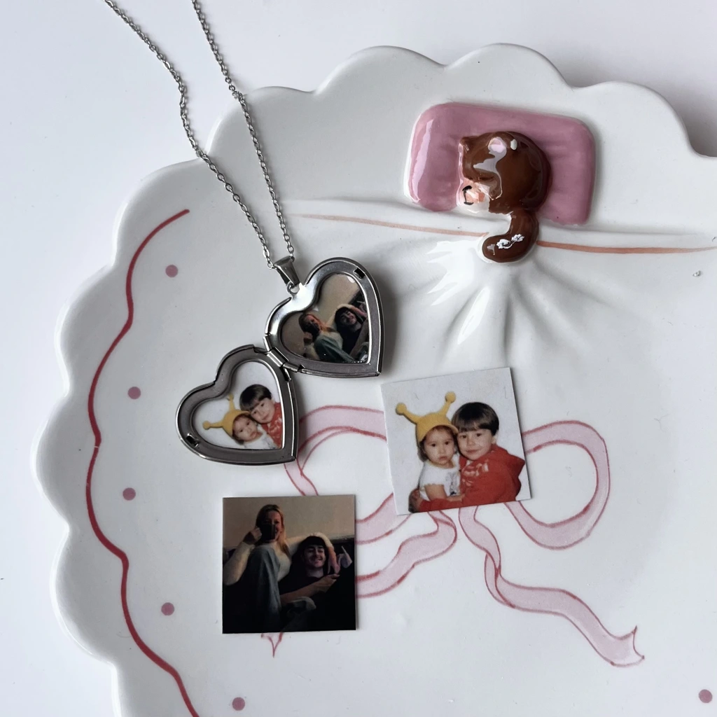 • Desenli Kapaklı Çift Fotoğraflı Kolye
