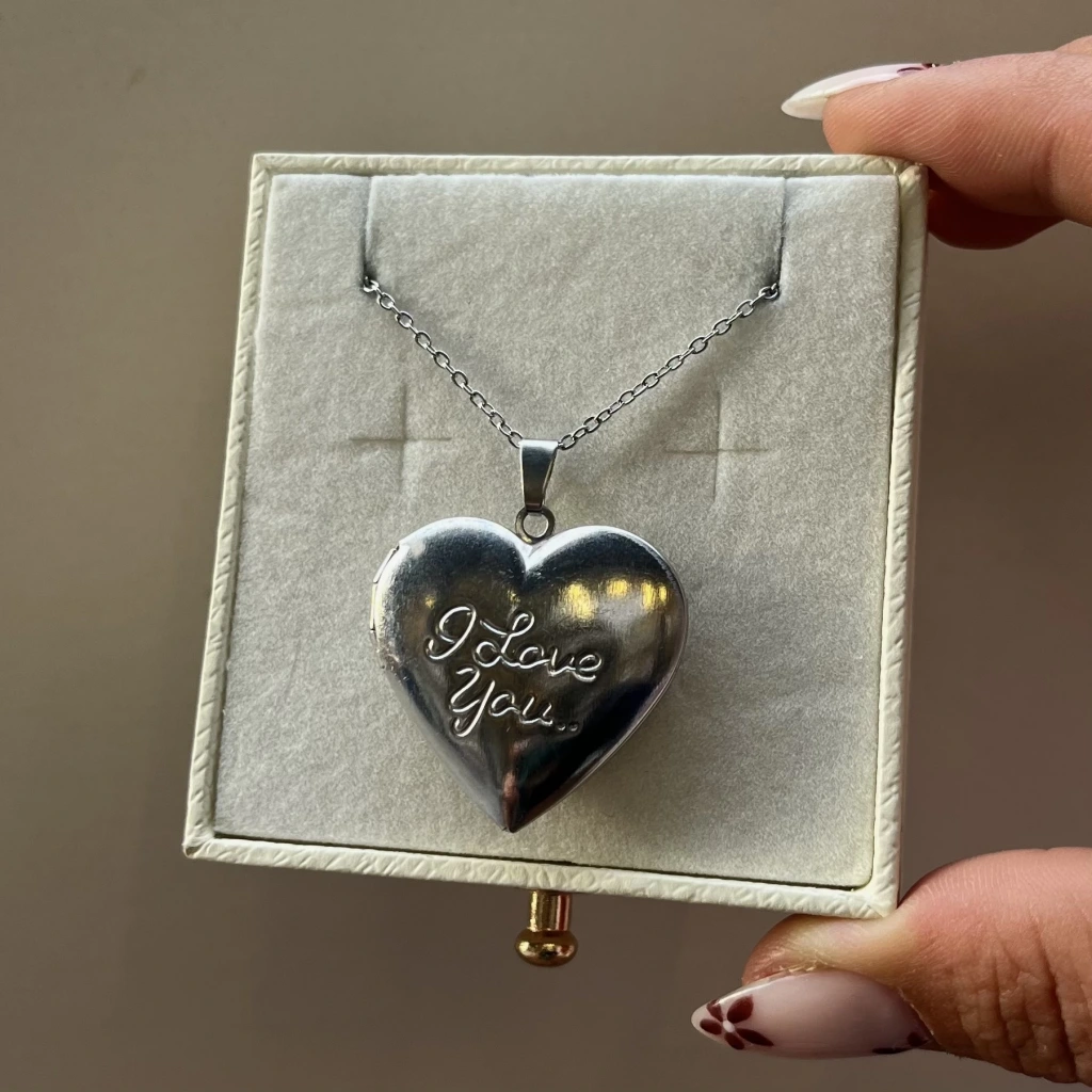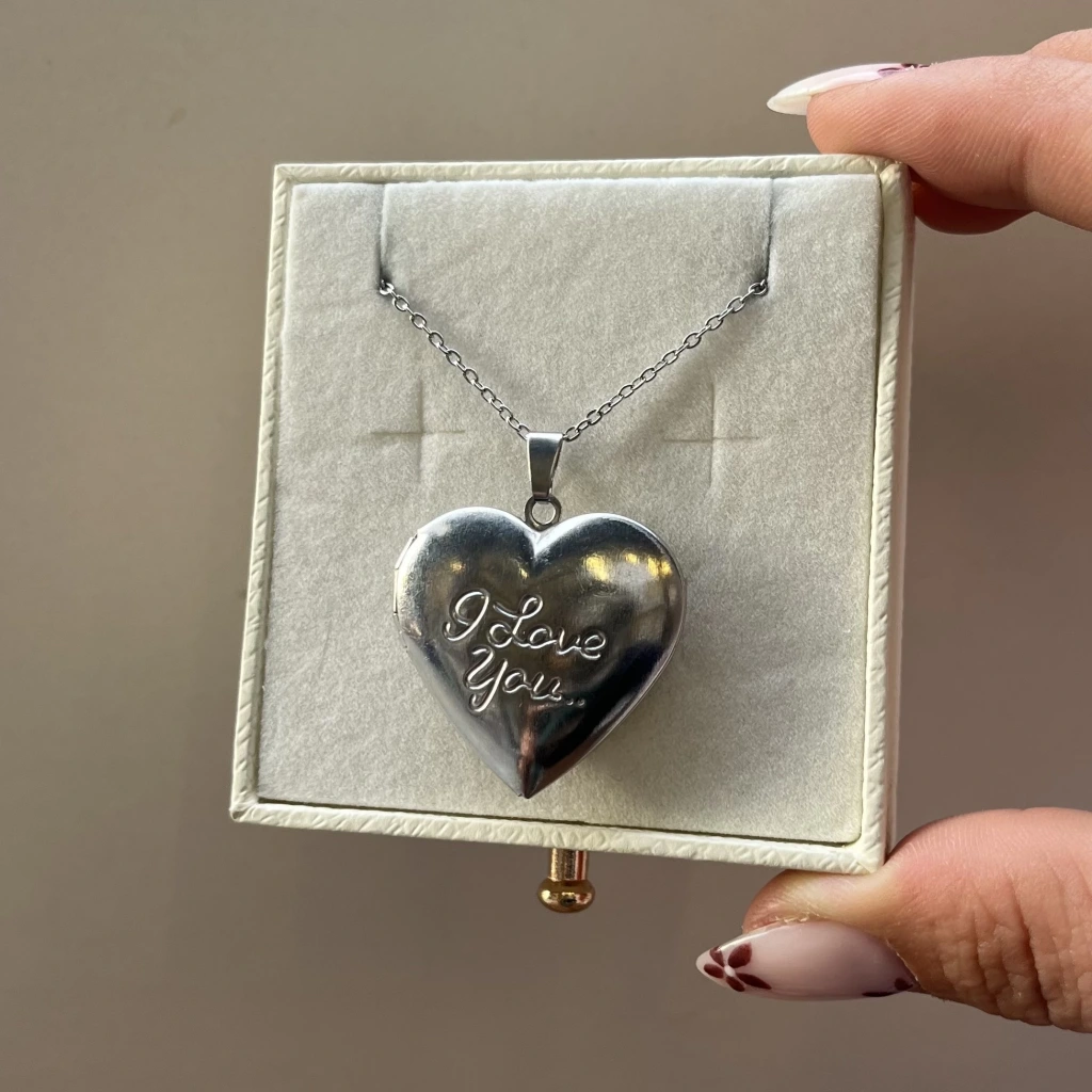 Fotoğraf ve Yazılı I Love You Desenli Kapaklı Kolye (2,1 cm)
