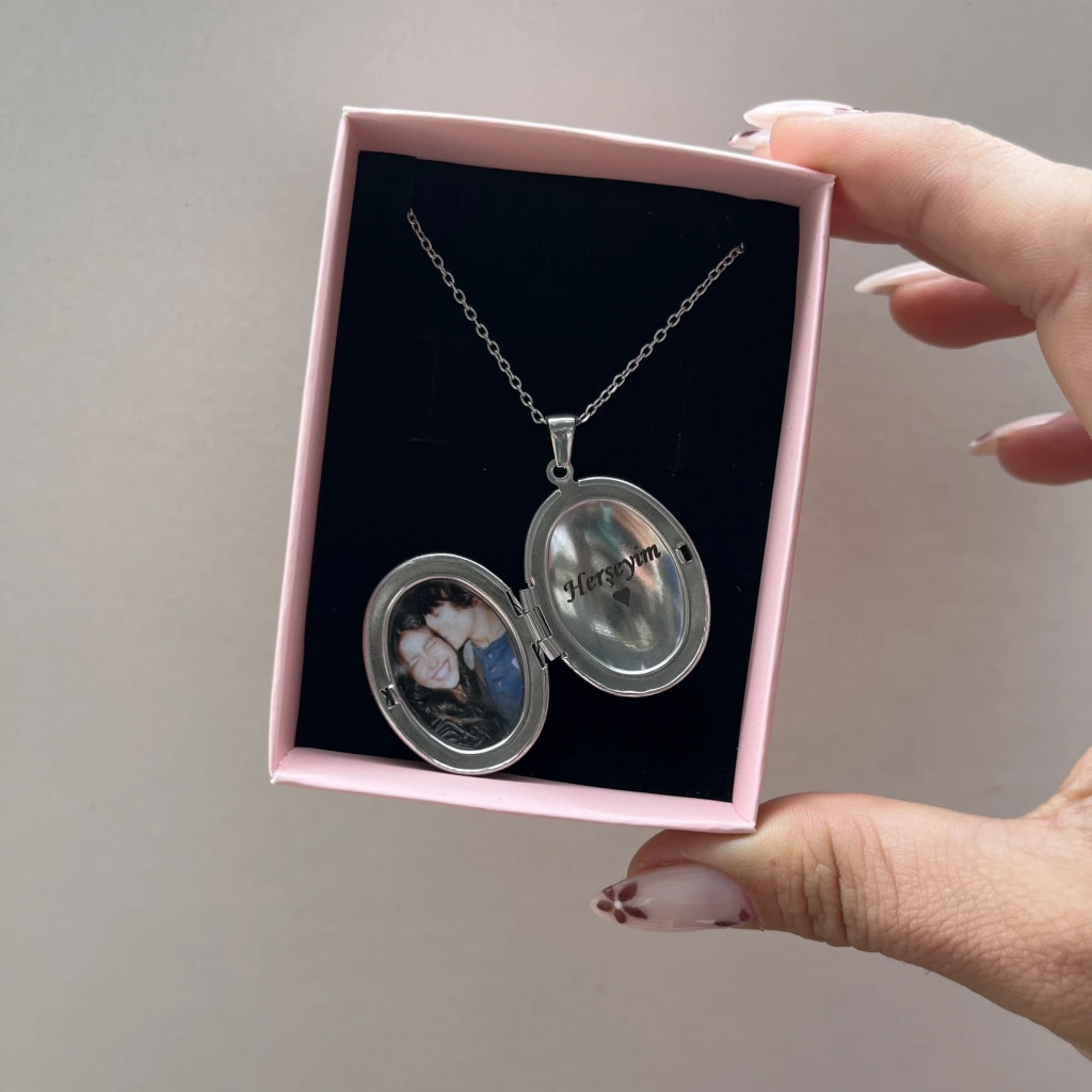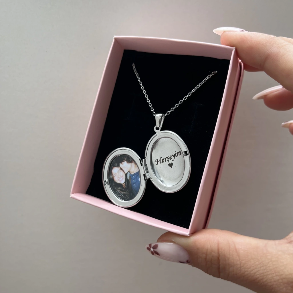 Fotoğraf ve Yazılı Oval Kapaklı Kolye (2,3 cm)