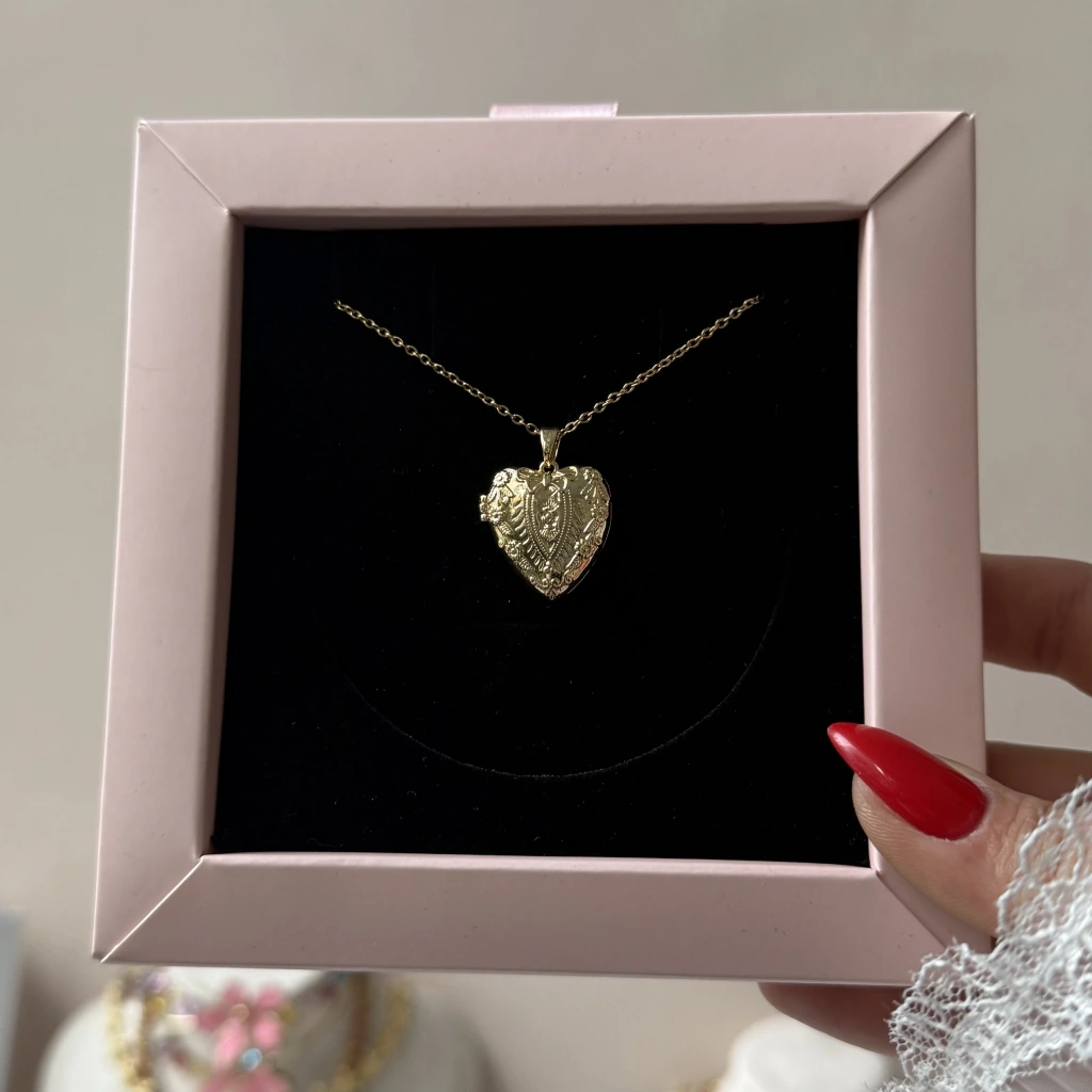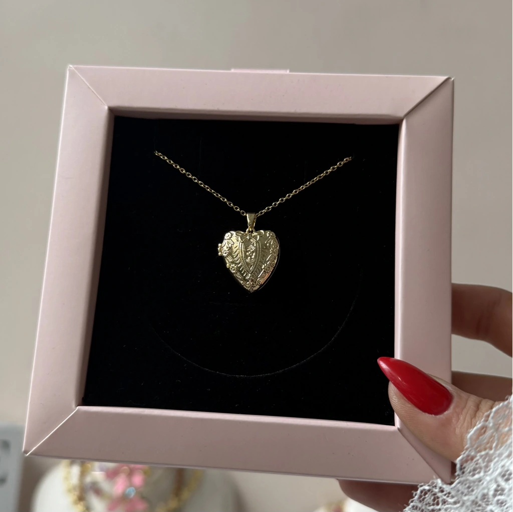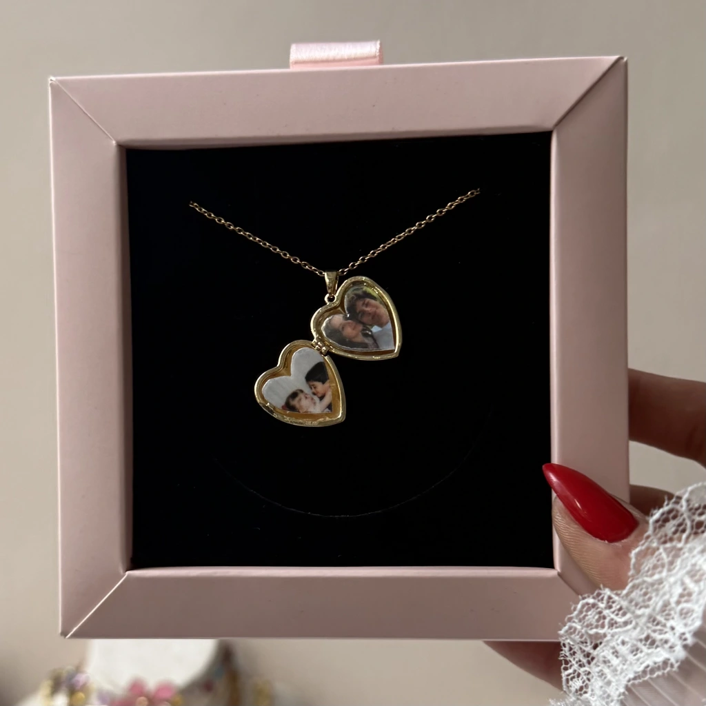 Fotoğraflı İşlemeli Kapaklı Kalp Kolye