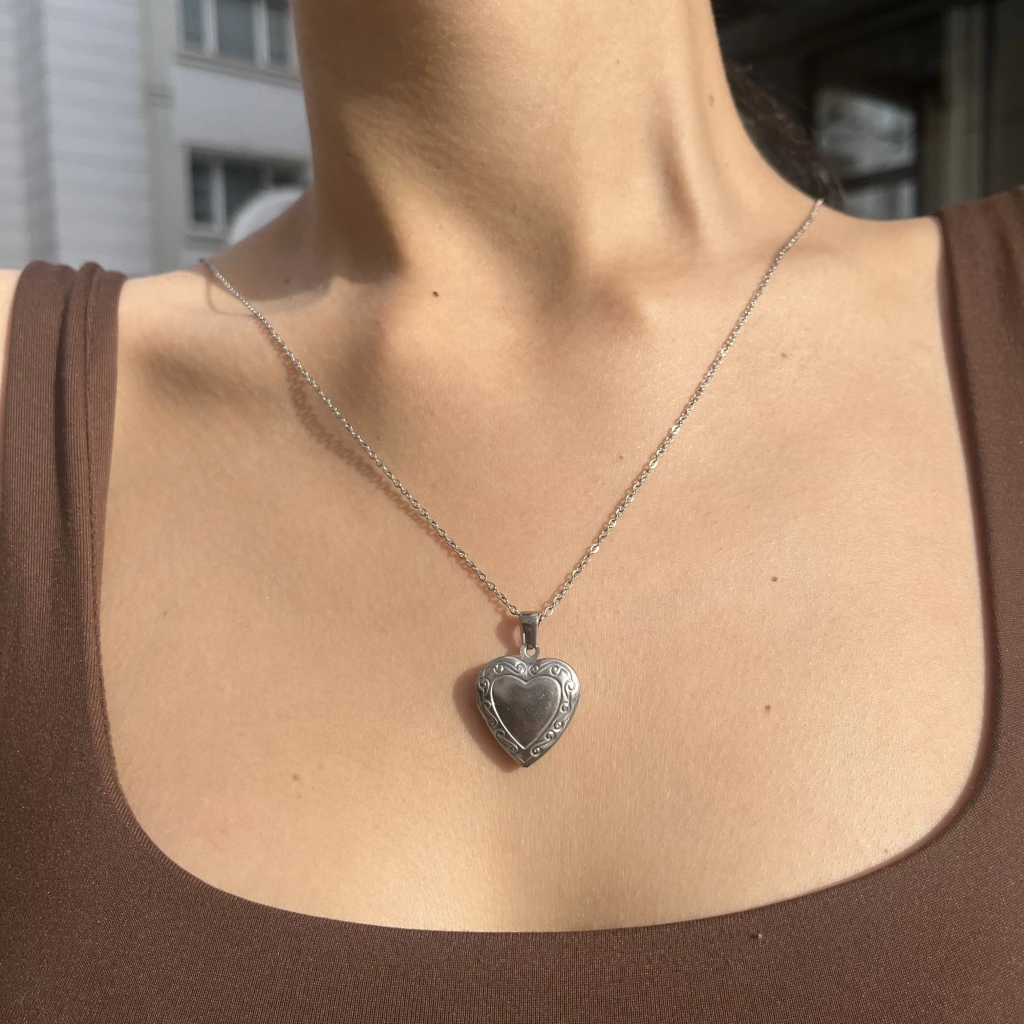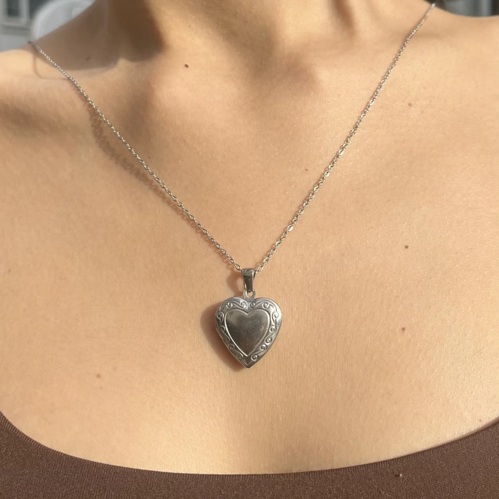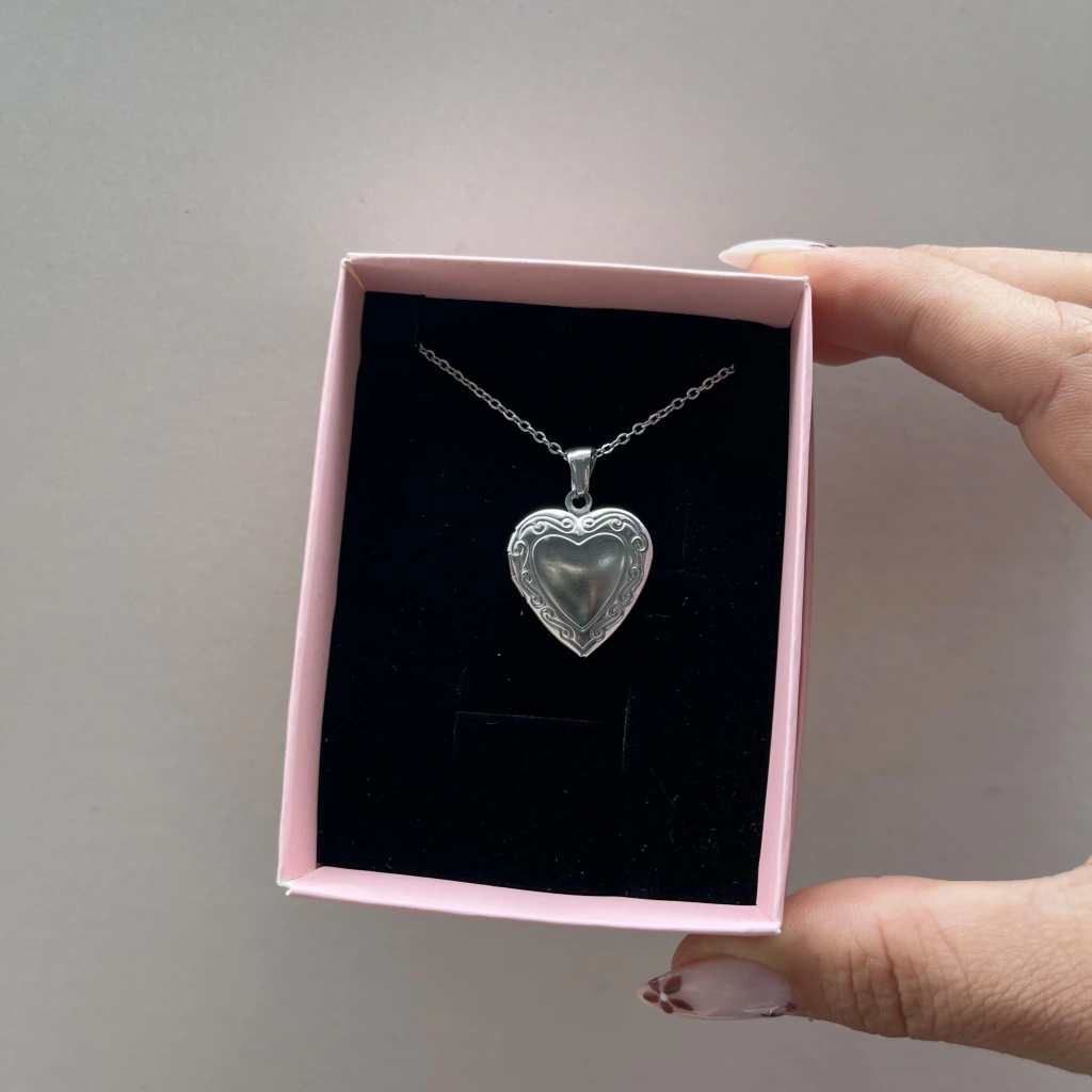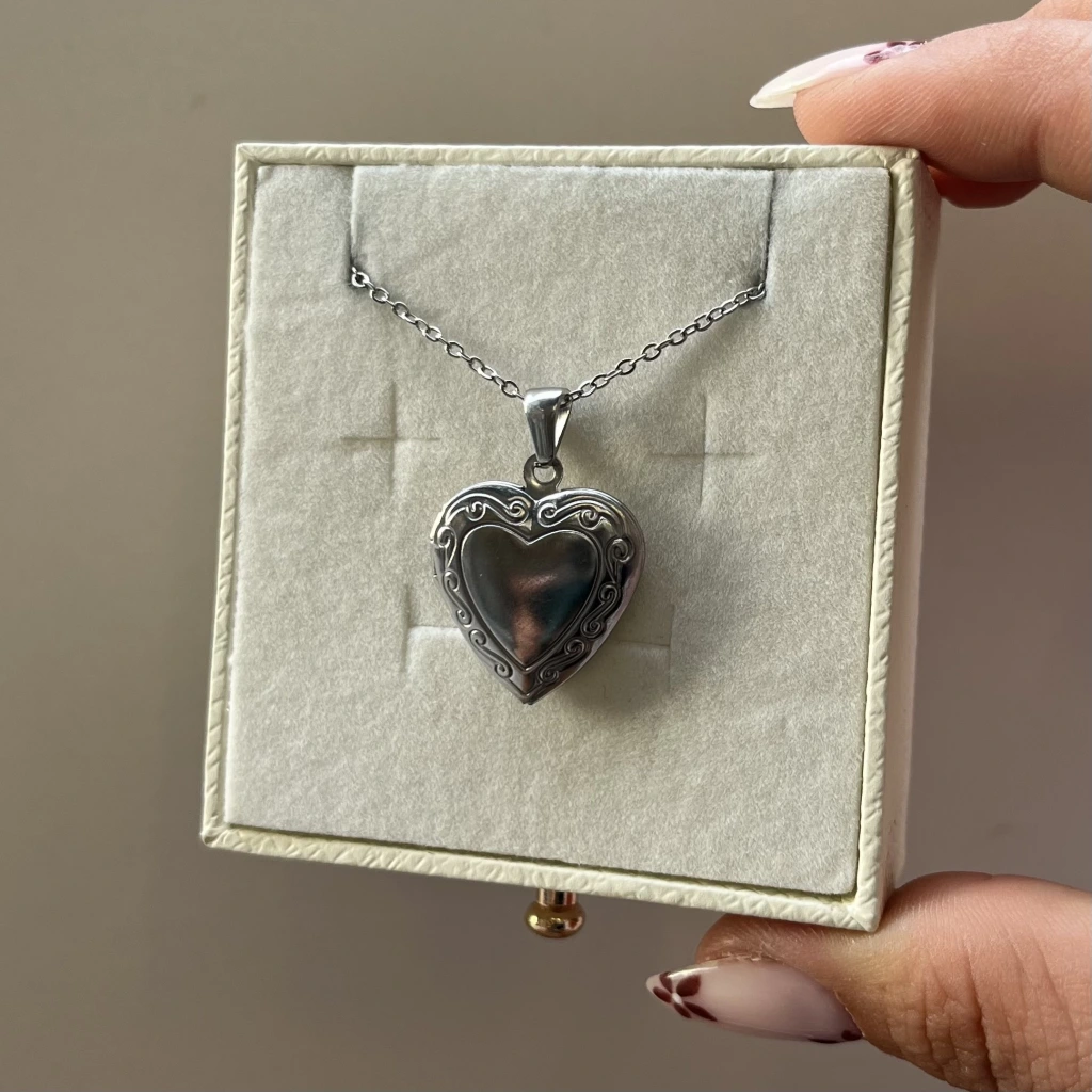 Fotoğraflı ve Yazılı Kalp Desenli Kapaklı Kolye (1,5 cm)