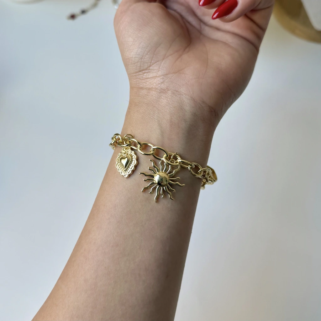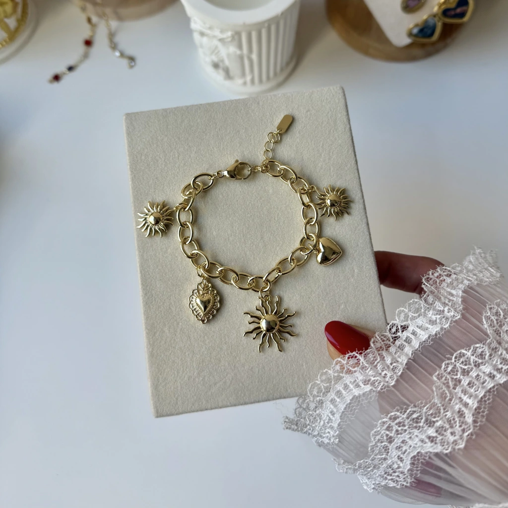 Güneş ve Kalp Charmlı Bileklik