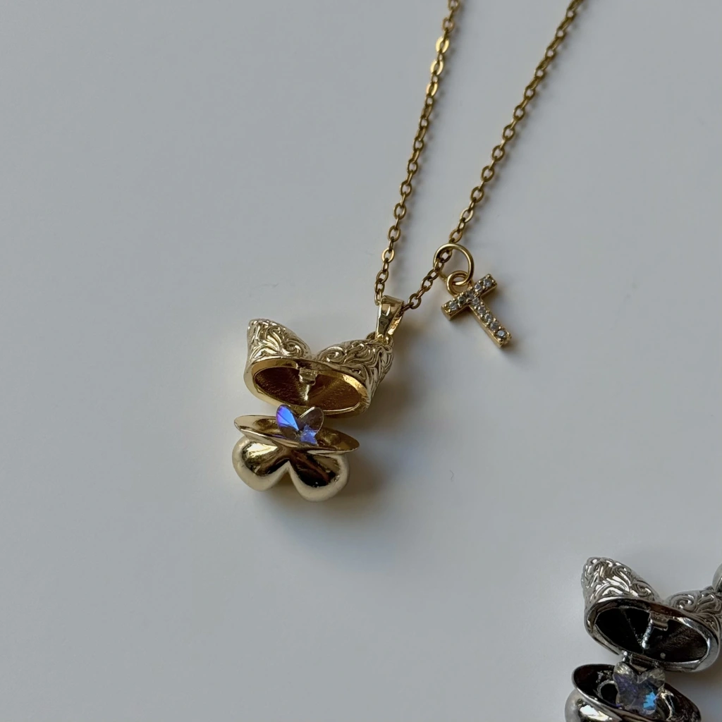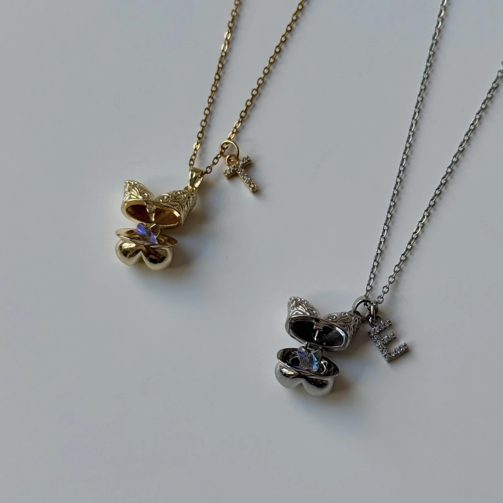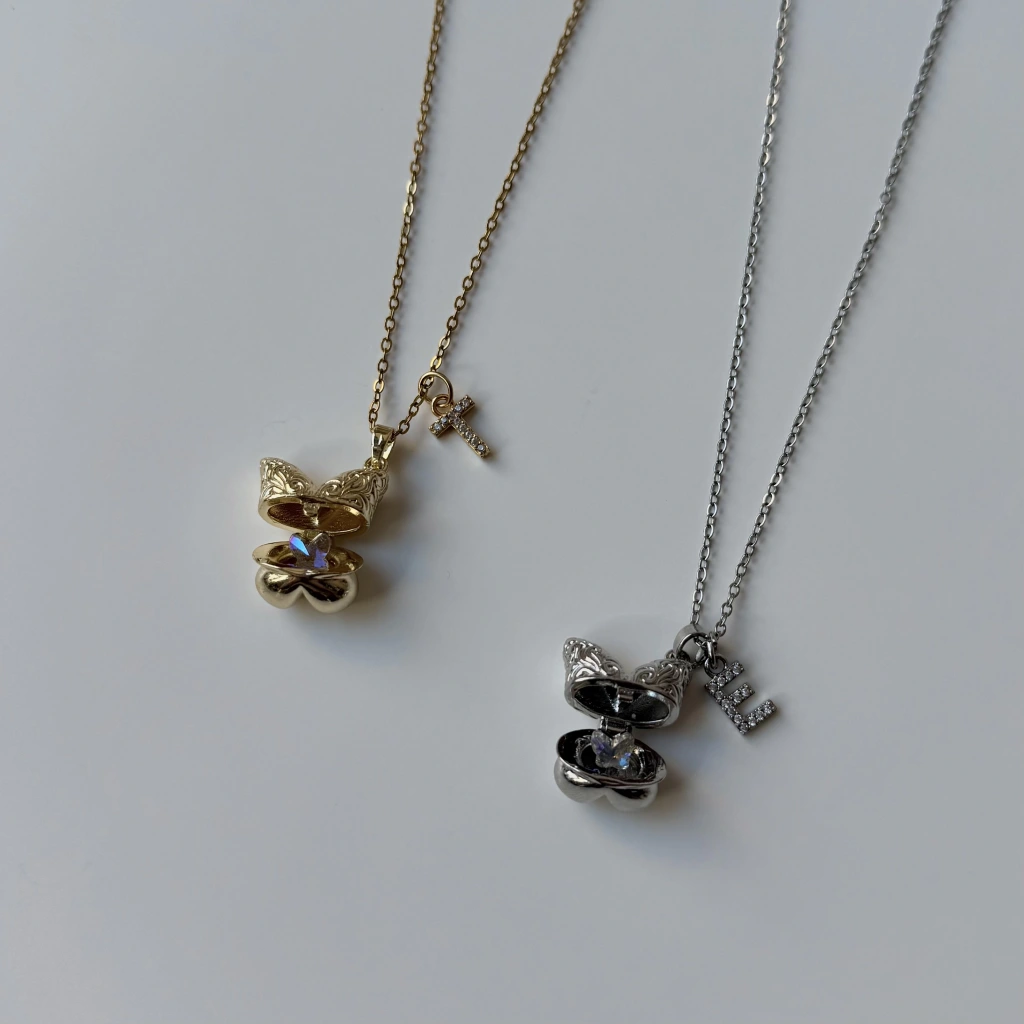 • Harf Charmlı Kelebek İçinde Kelebek Kolye