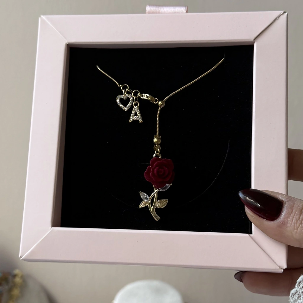 • Harfli Asansörlü Kadife Çiçek Kolye