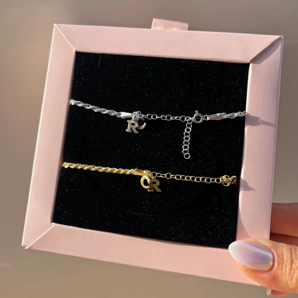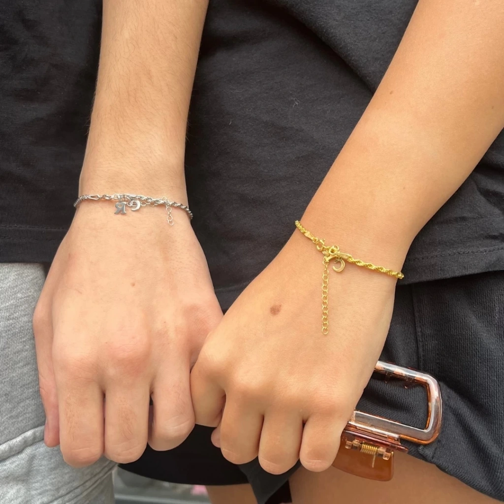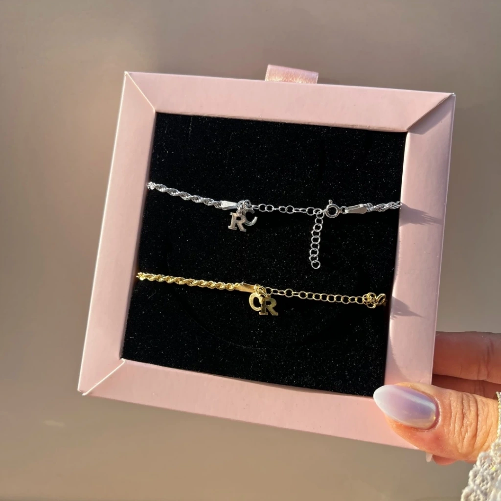 Kişiye Özel Harfli Burgu Çift Bileklikleri | 925 Gümüş
