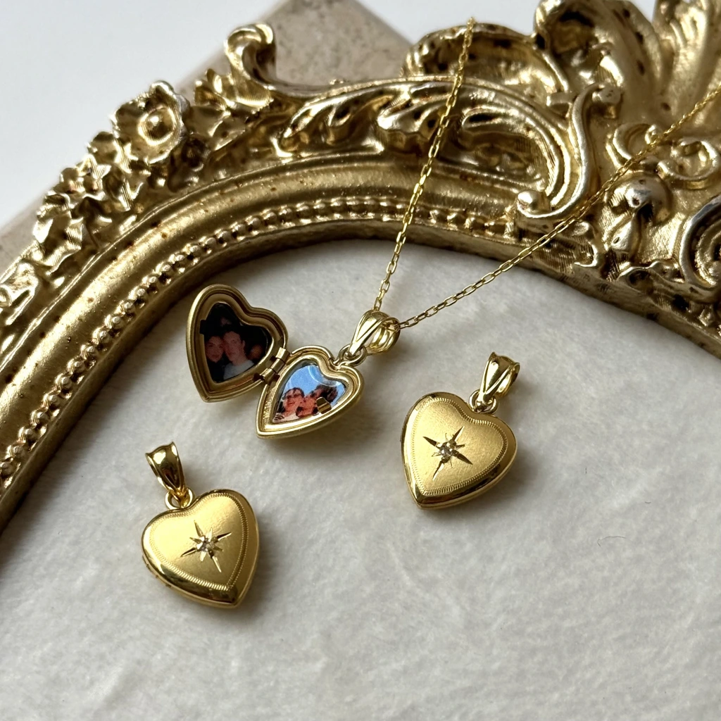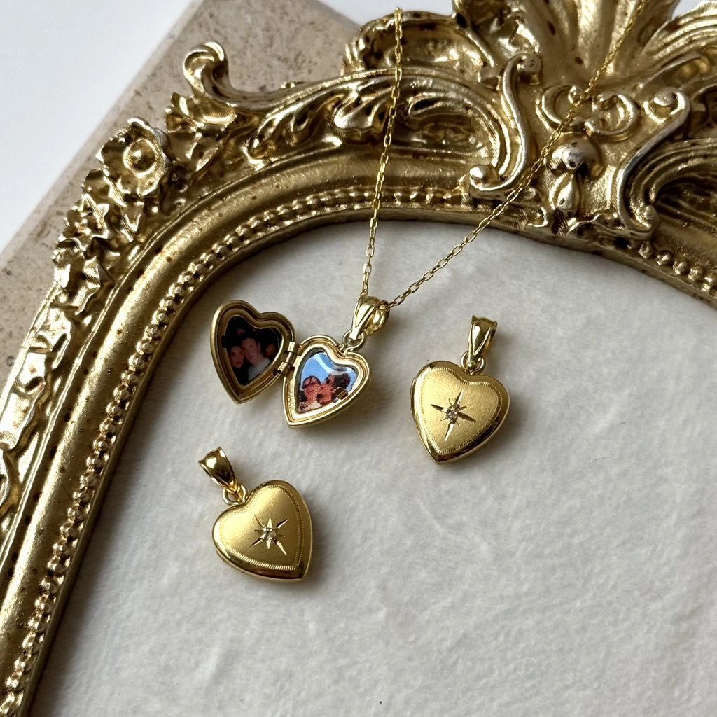 • Kuzey Yıldız Desenli Fotoğraflı Kalp Kolye