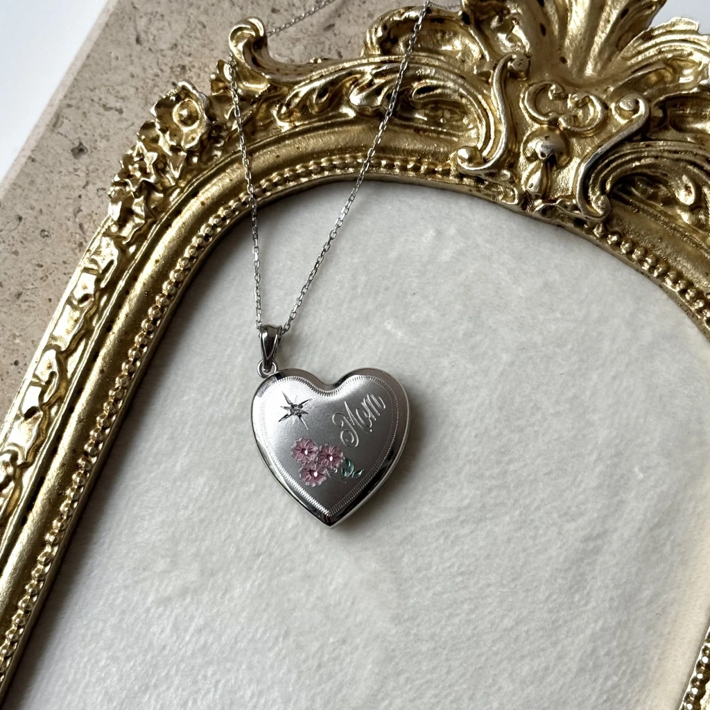 • Kuzey Yıldız ve Çiçek Desenli Fotoğraflı Kalp Kolye
