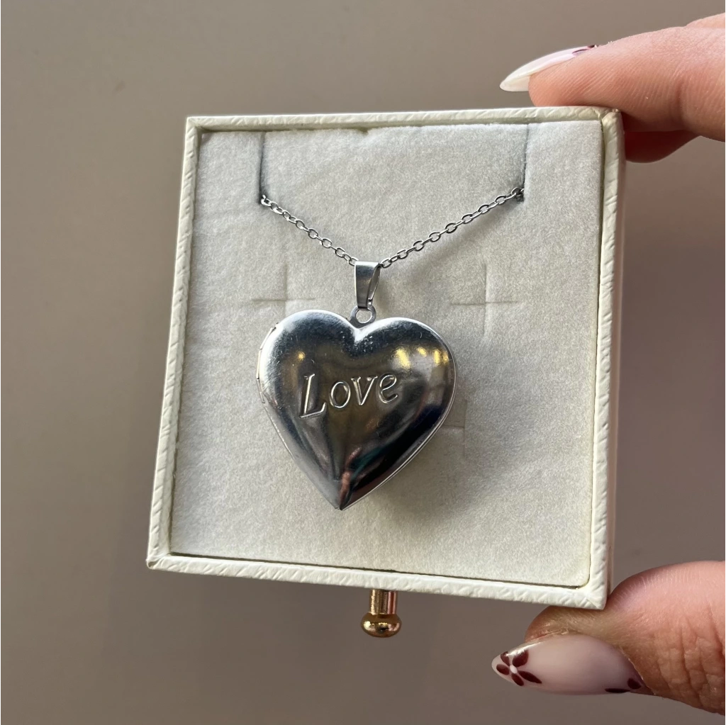 Love Desenli Fotoğraf ve Yazılı Kapaklı Kolye (2,1 cm )