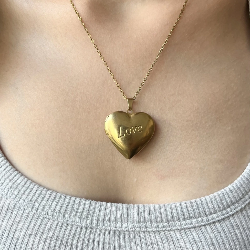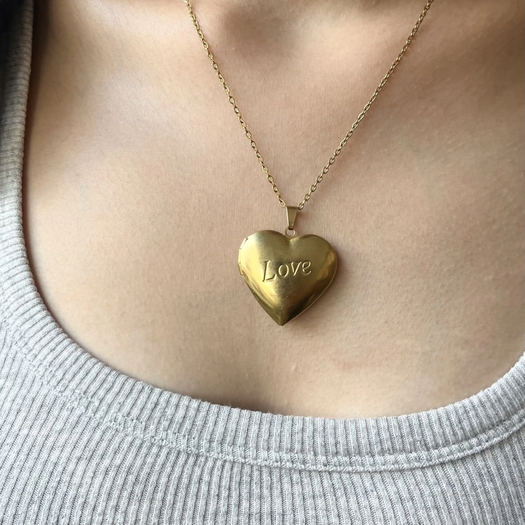 Love Desenli Fotoğraf ve Yazılı Kapaklı Kolye (2,1 cm )