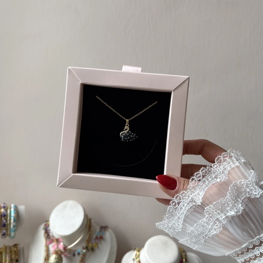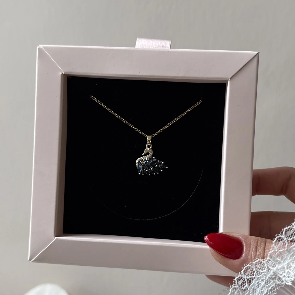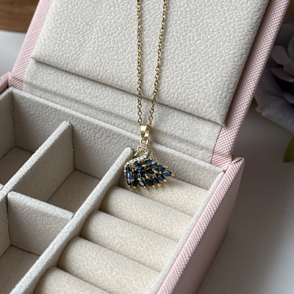 • Mavi Taşlı Kuğu Kolye