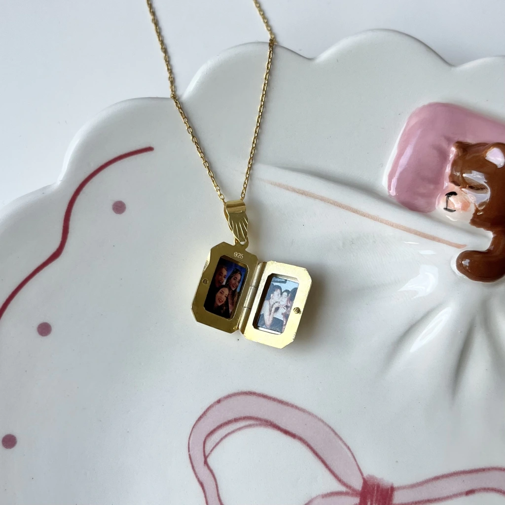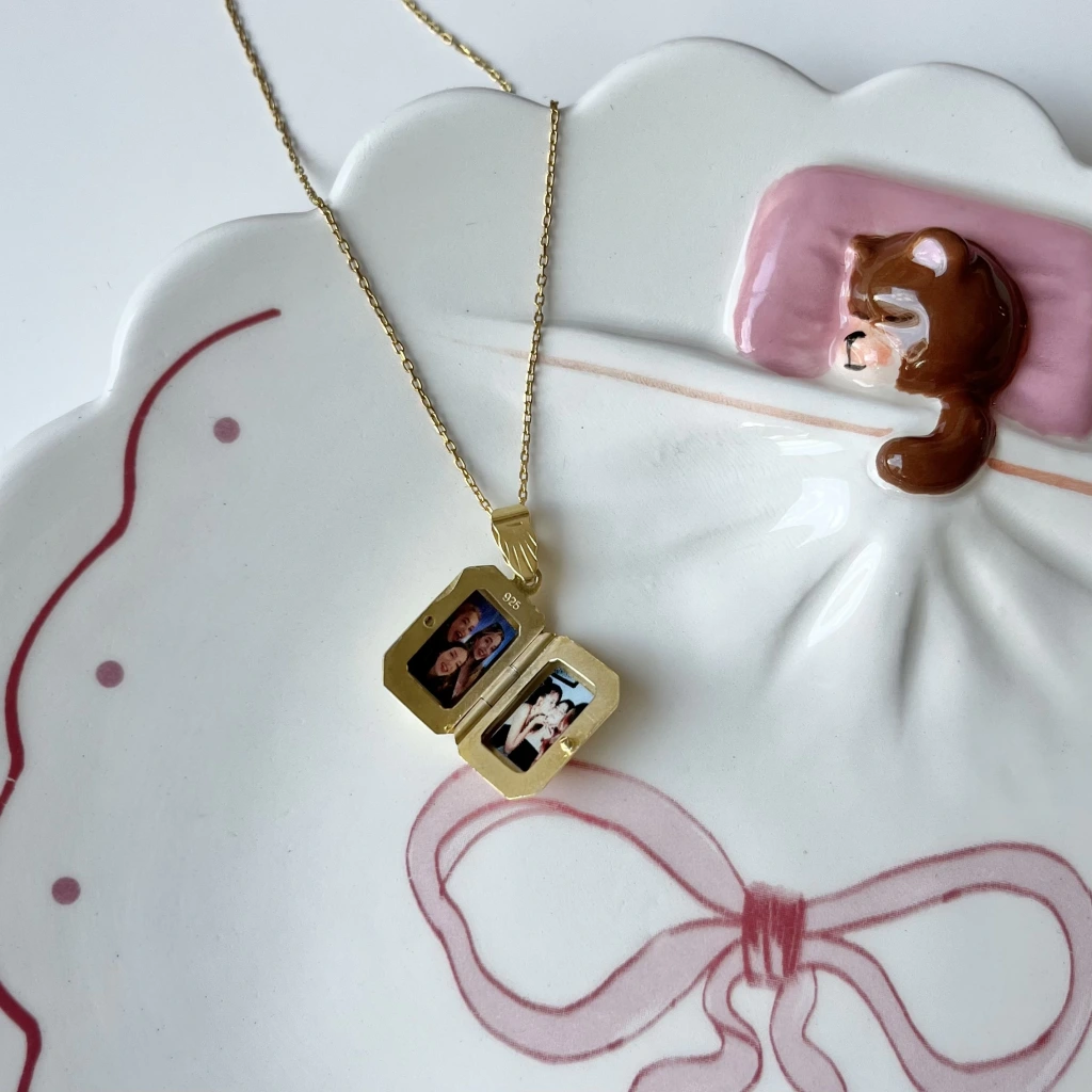 • Minimal Dörtgen Fotoğraflı Kapaklı Kolye