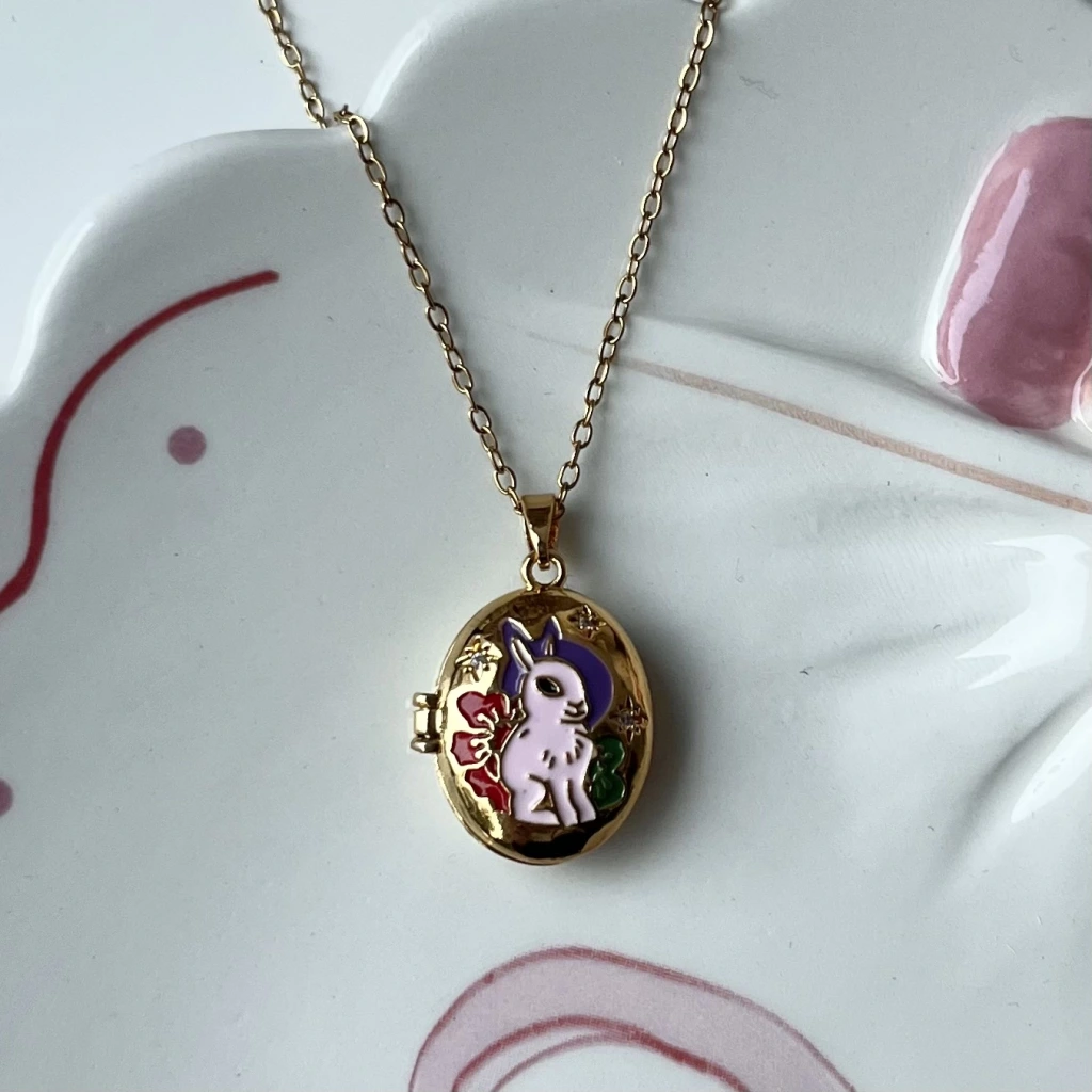 Tavşan Desenli Oval Fotoğraflı Kolye (1,7 cm)