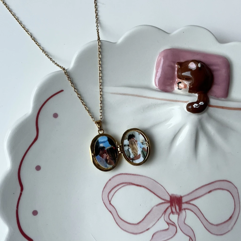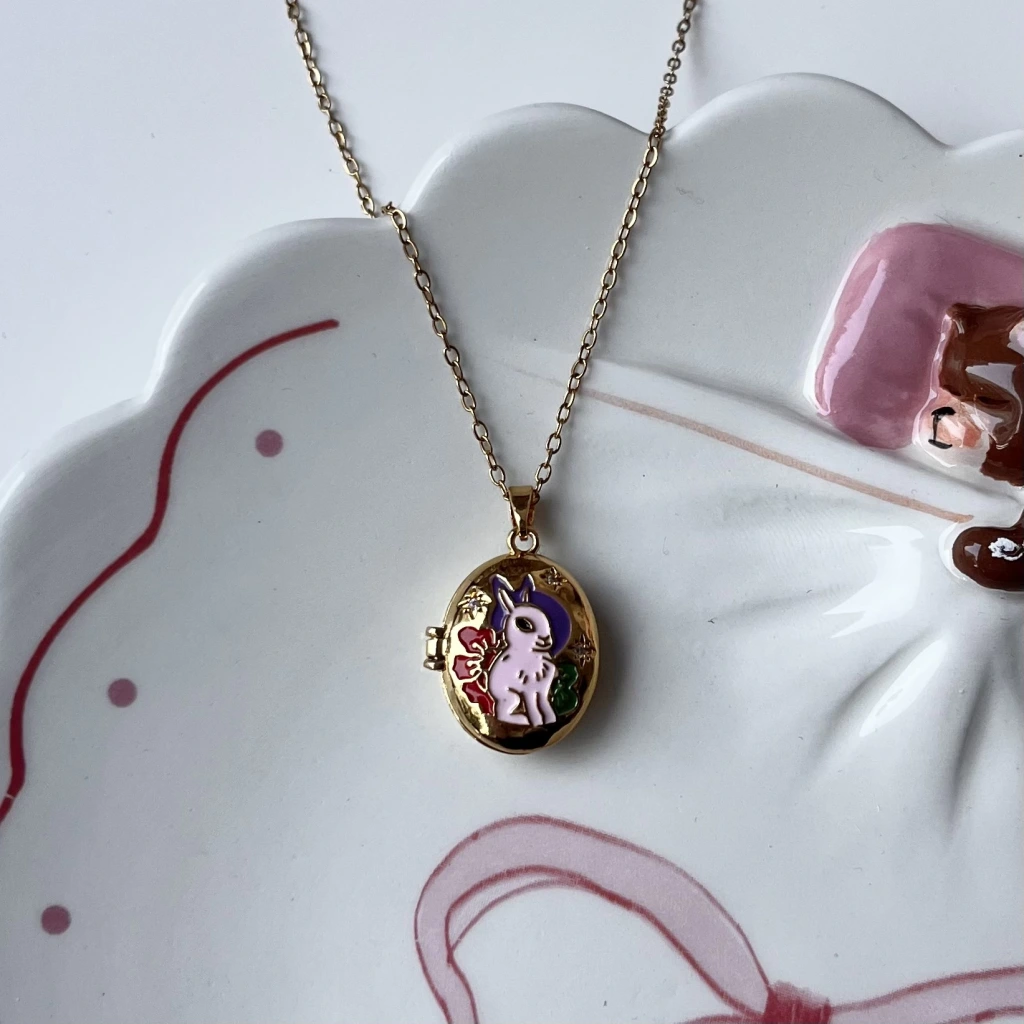 • Tavşan Desenli Oval Fotoğraflı Kolye (1,7 cm)