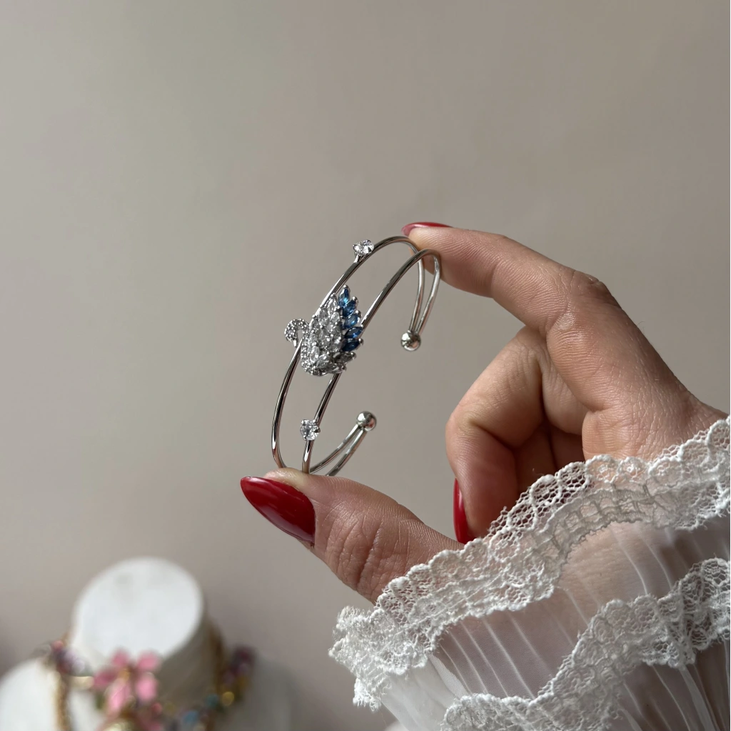 Prenses Mavi Taşlı Kuğu Kelepçe Bileklik