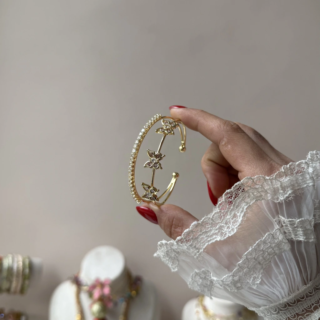 • Prenses Pembe Taşlı Kelebek Kelepçe Bileklik