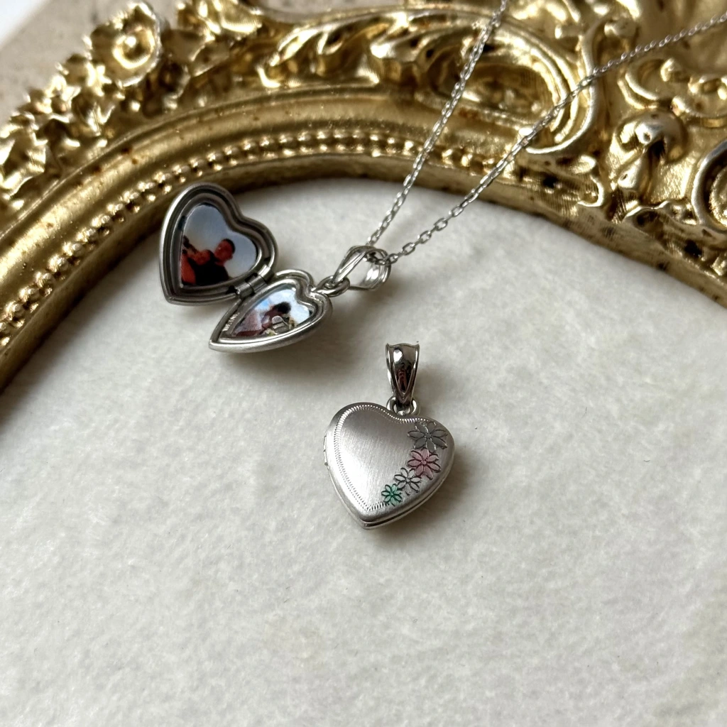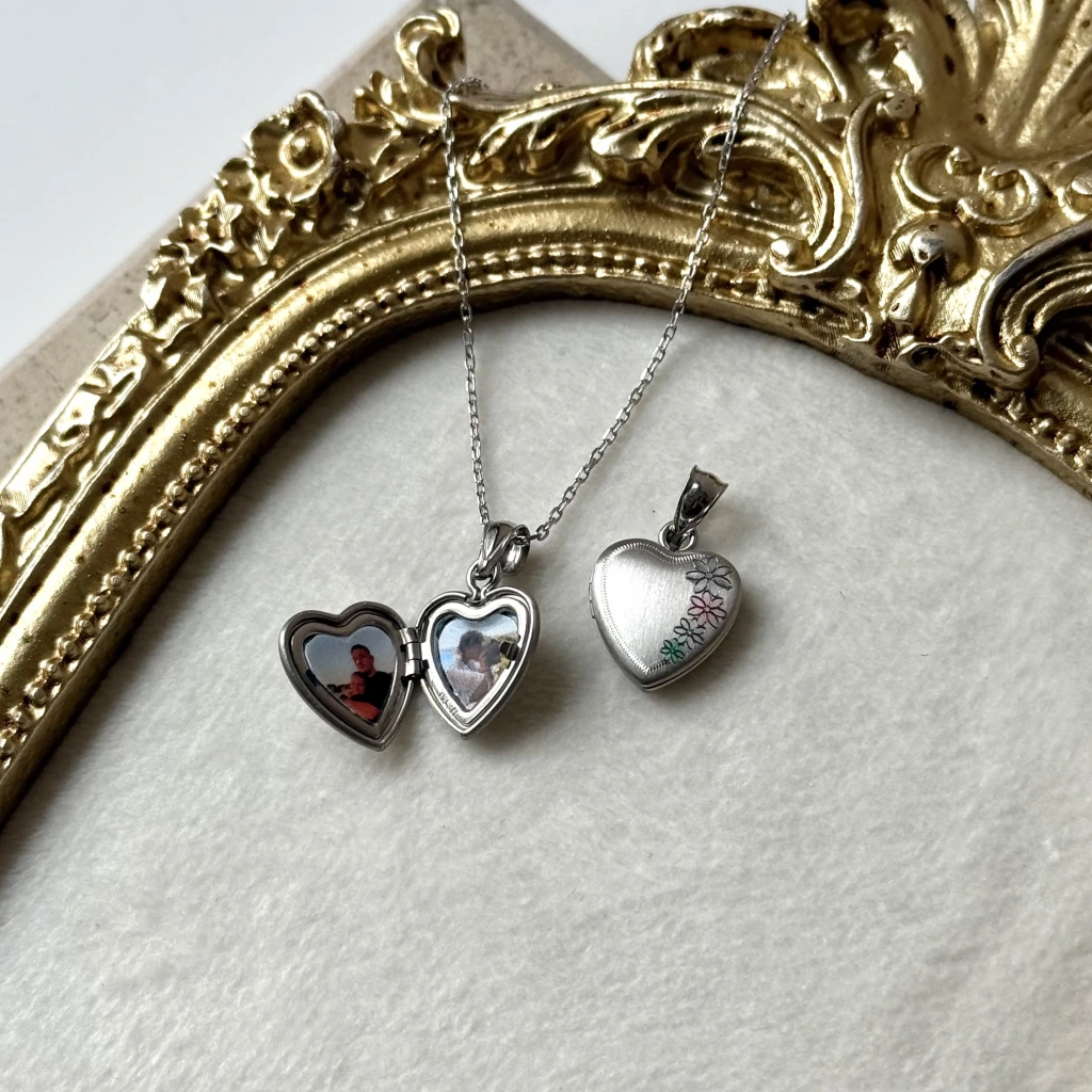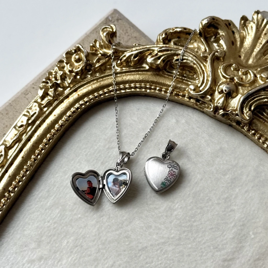 • Renkli Çiçek Desenli Fotoğraflı Kalp Kolye