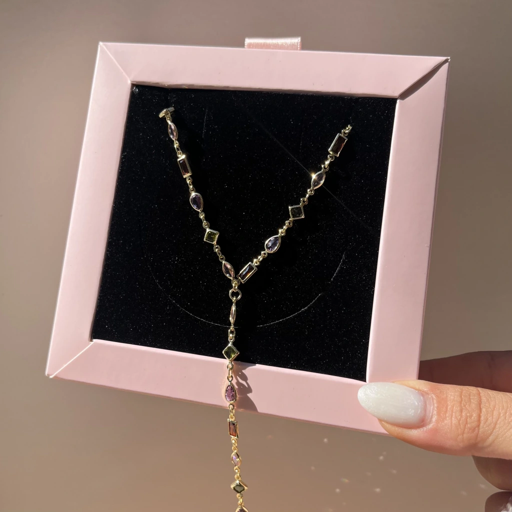 • Renkli Geometrik Taşlı Y Kolye