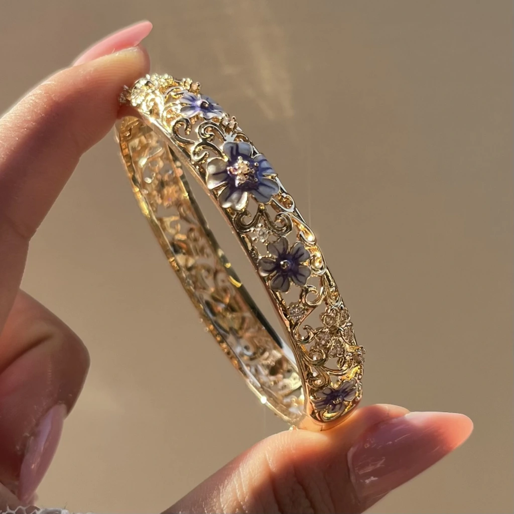 Saten Mor Çiçekli Vintage Mineli Bileklik
