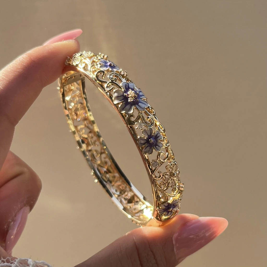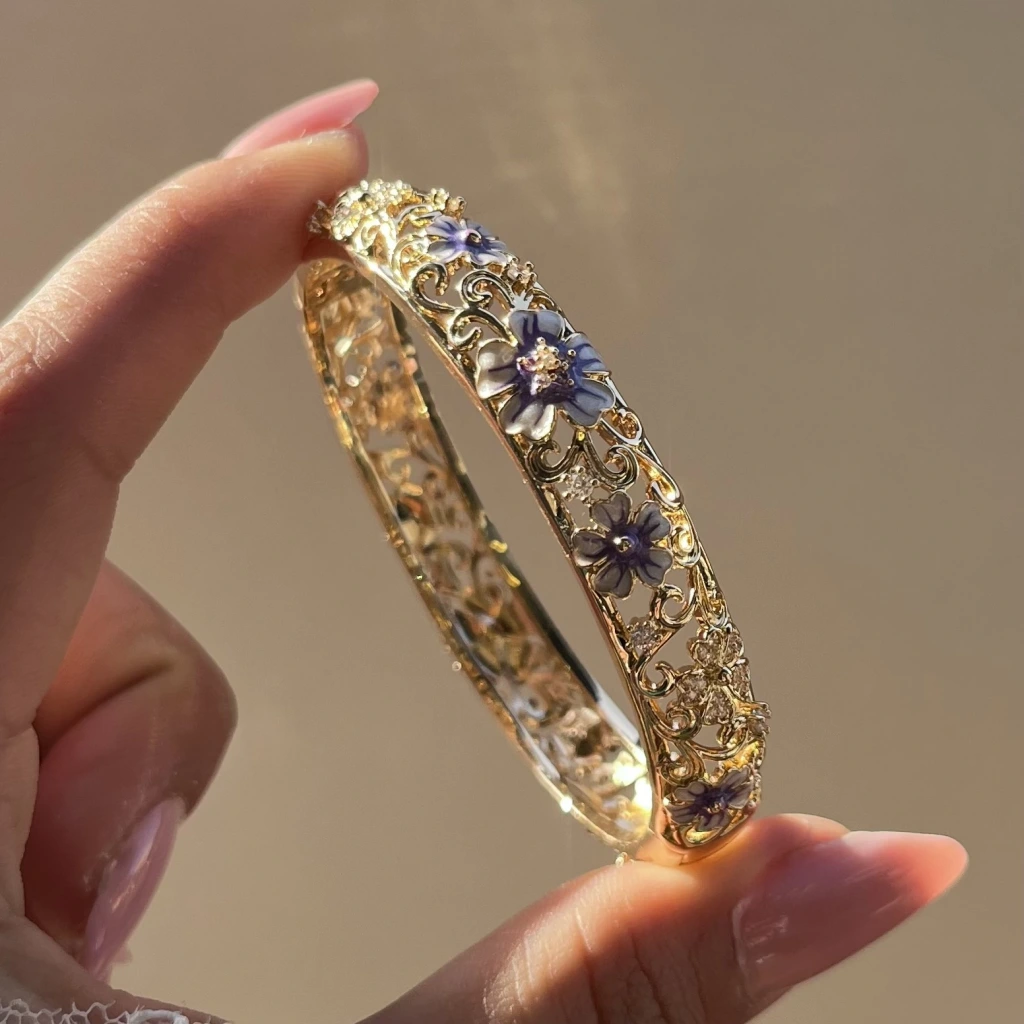 • Saten Mor Çiçekli Vintage Mineli Bileklik