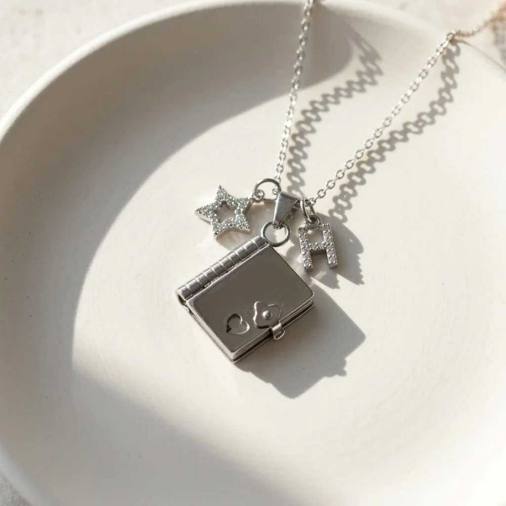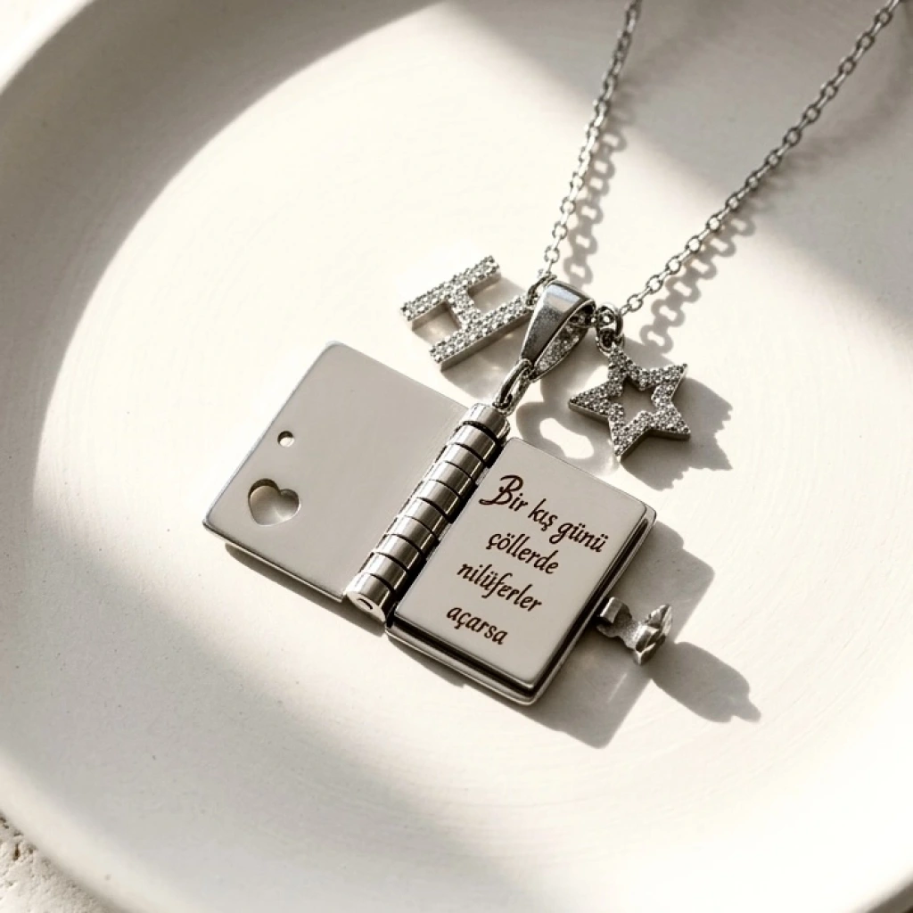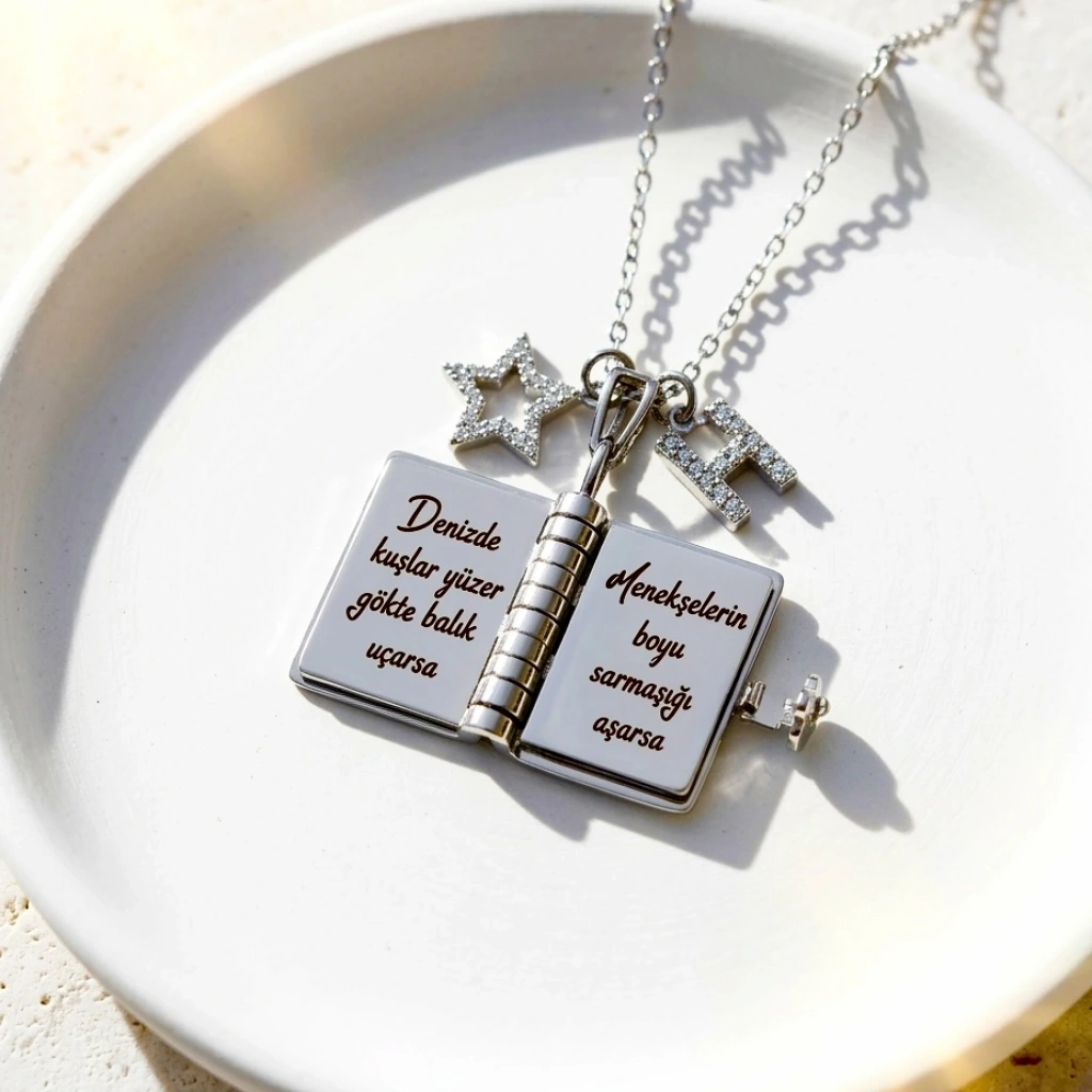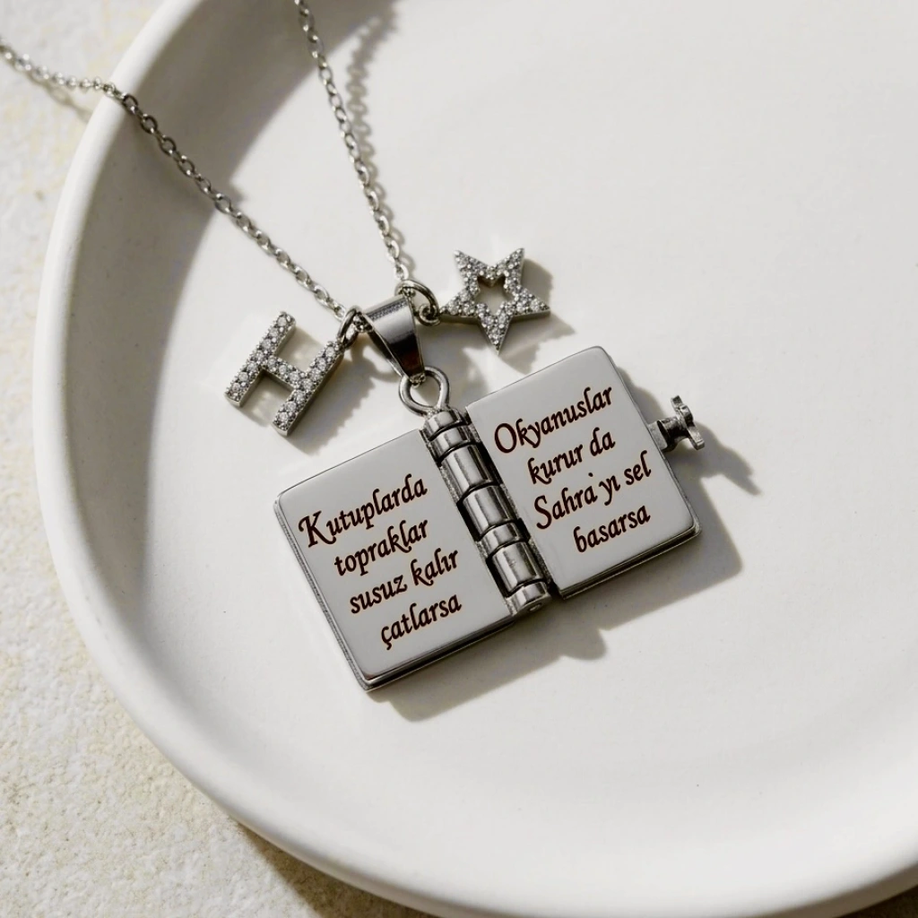 Yıldız Charmlı ve Harfli Şiirli Kitap Kolye