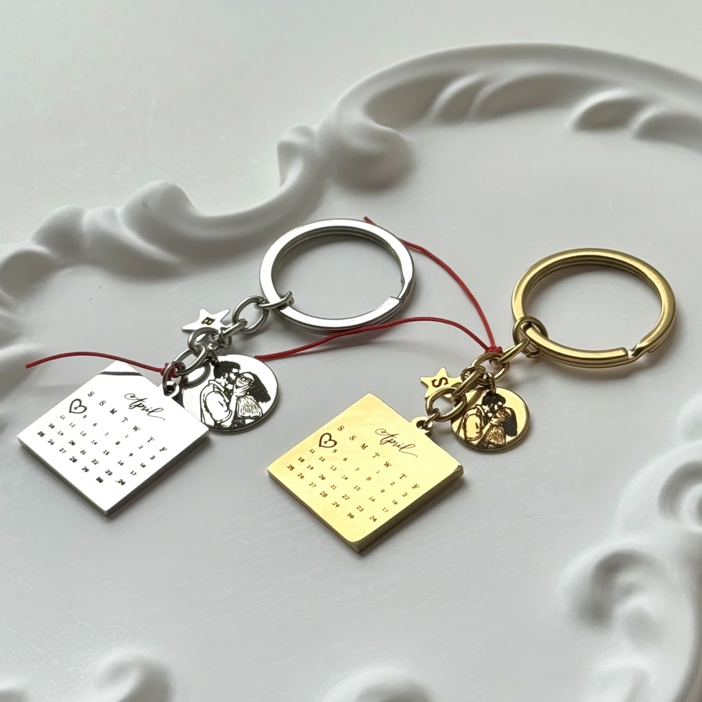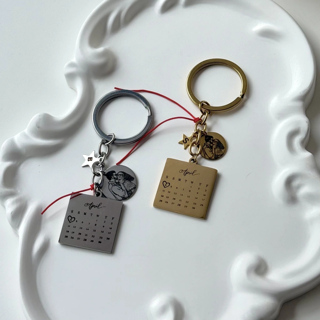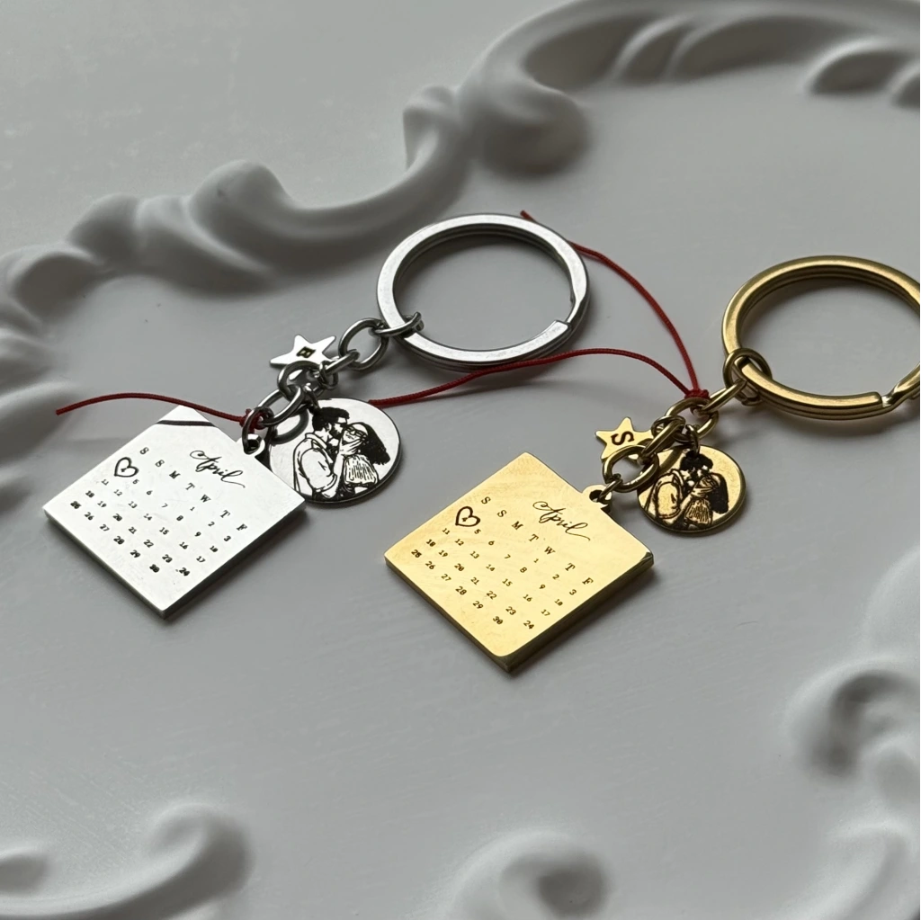 Tarihli ve Çizim Fotoğraflı Anahtarlık