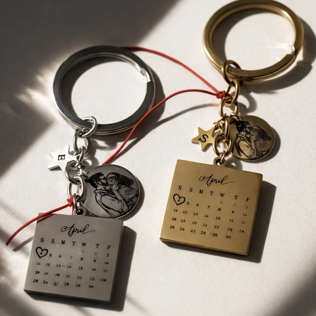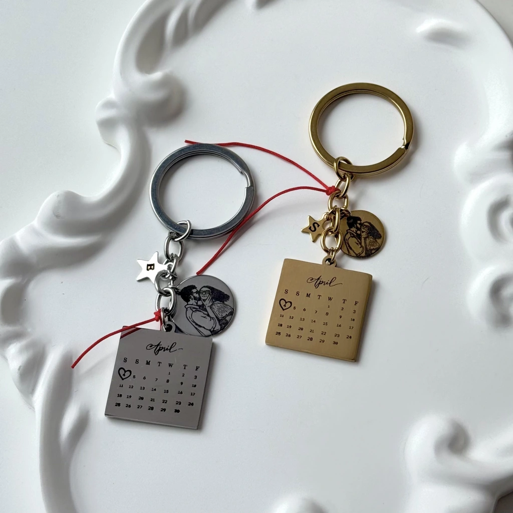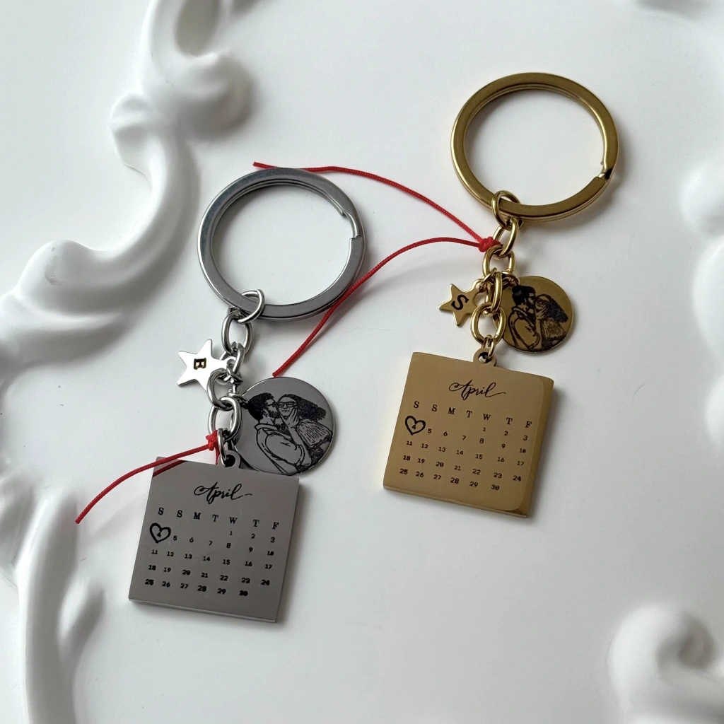 Tarihli ve Çizim Fotoğraflı Anahtarlık