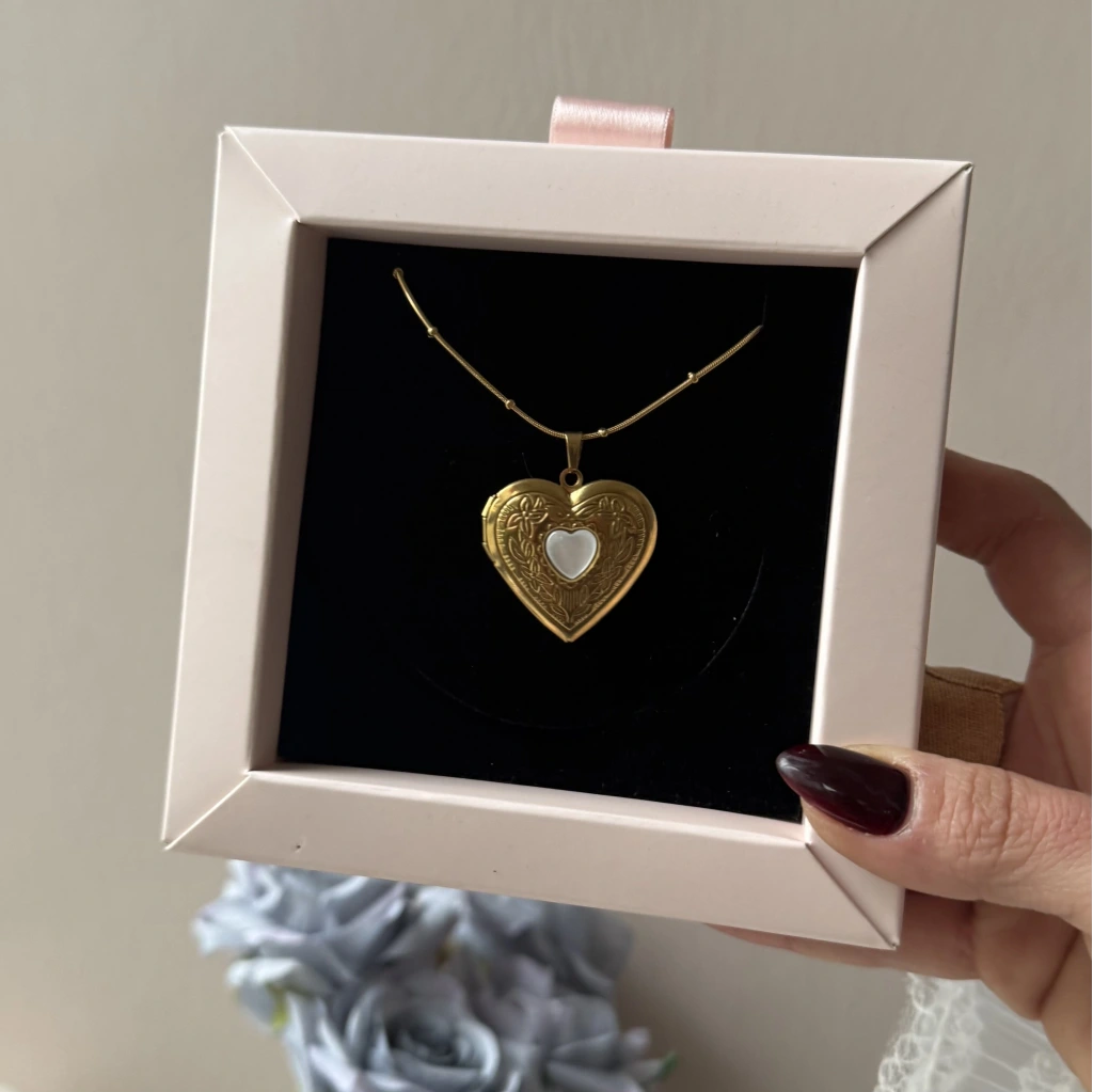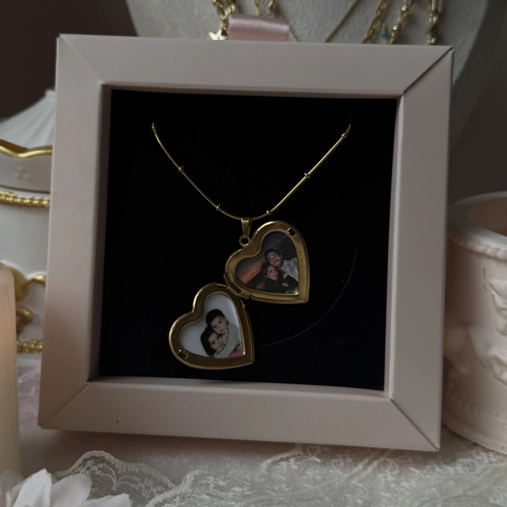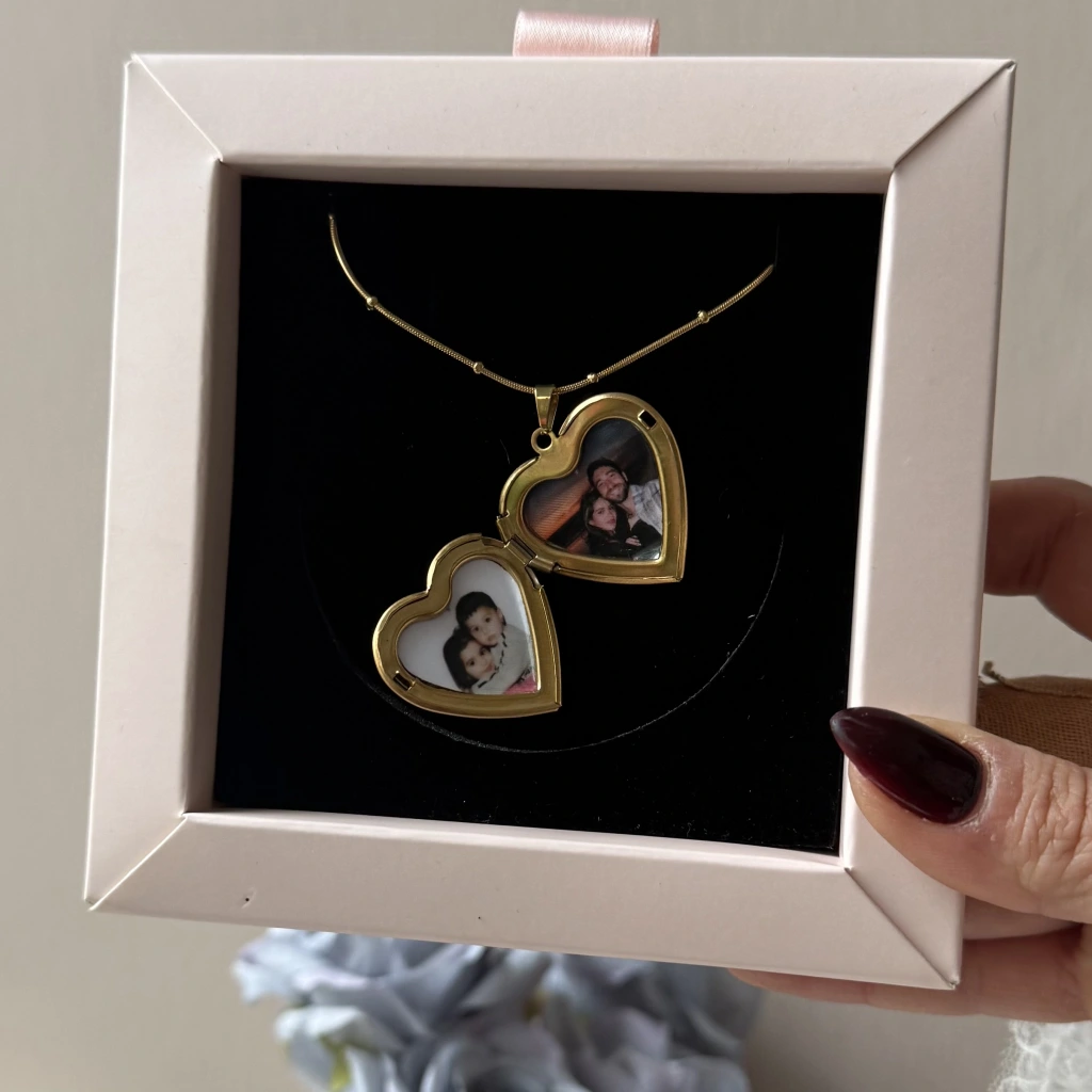 • Çift Fotoğraflı İşlemeli Kapaklı Kalp Kolye | Çelik