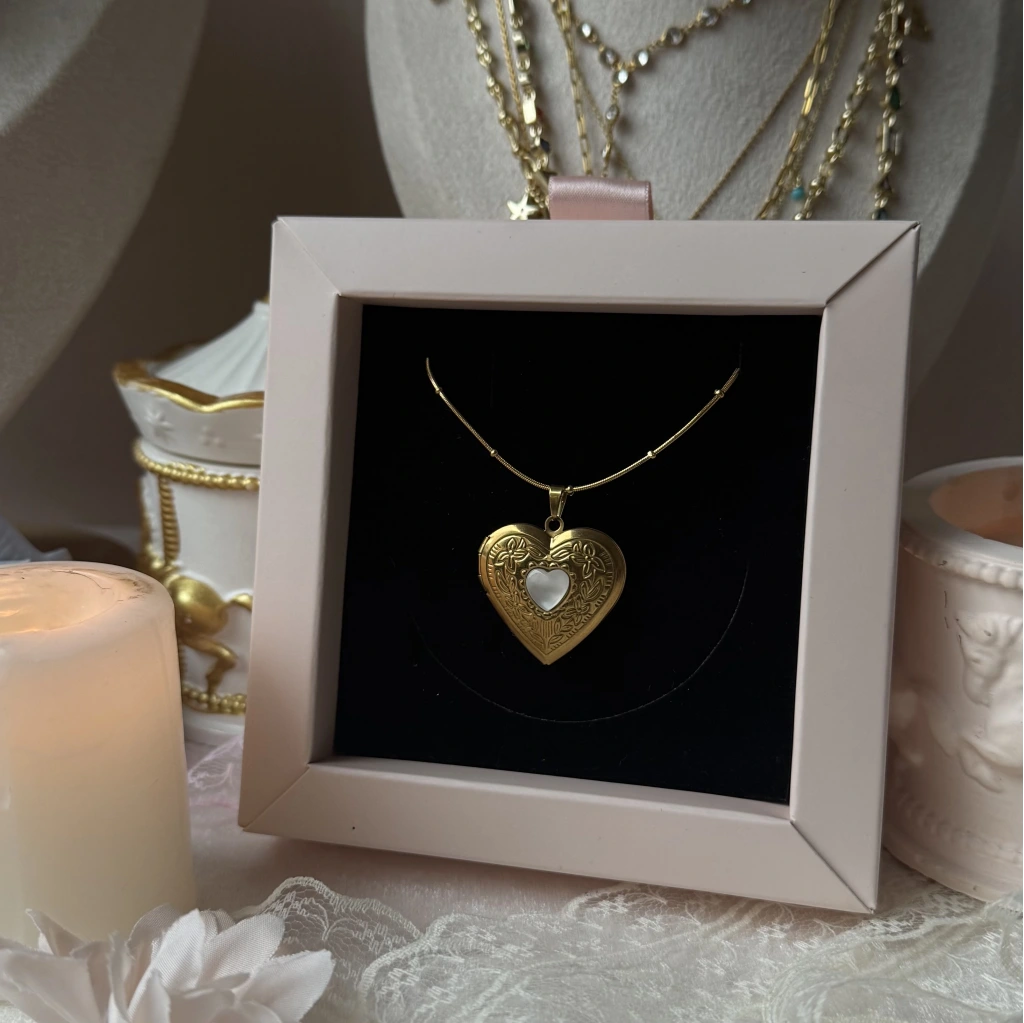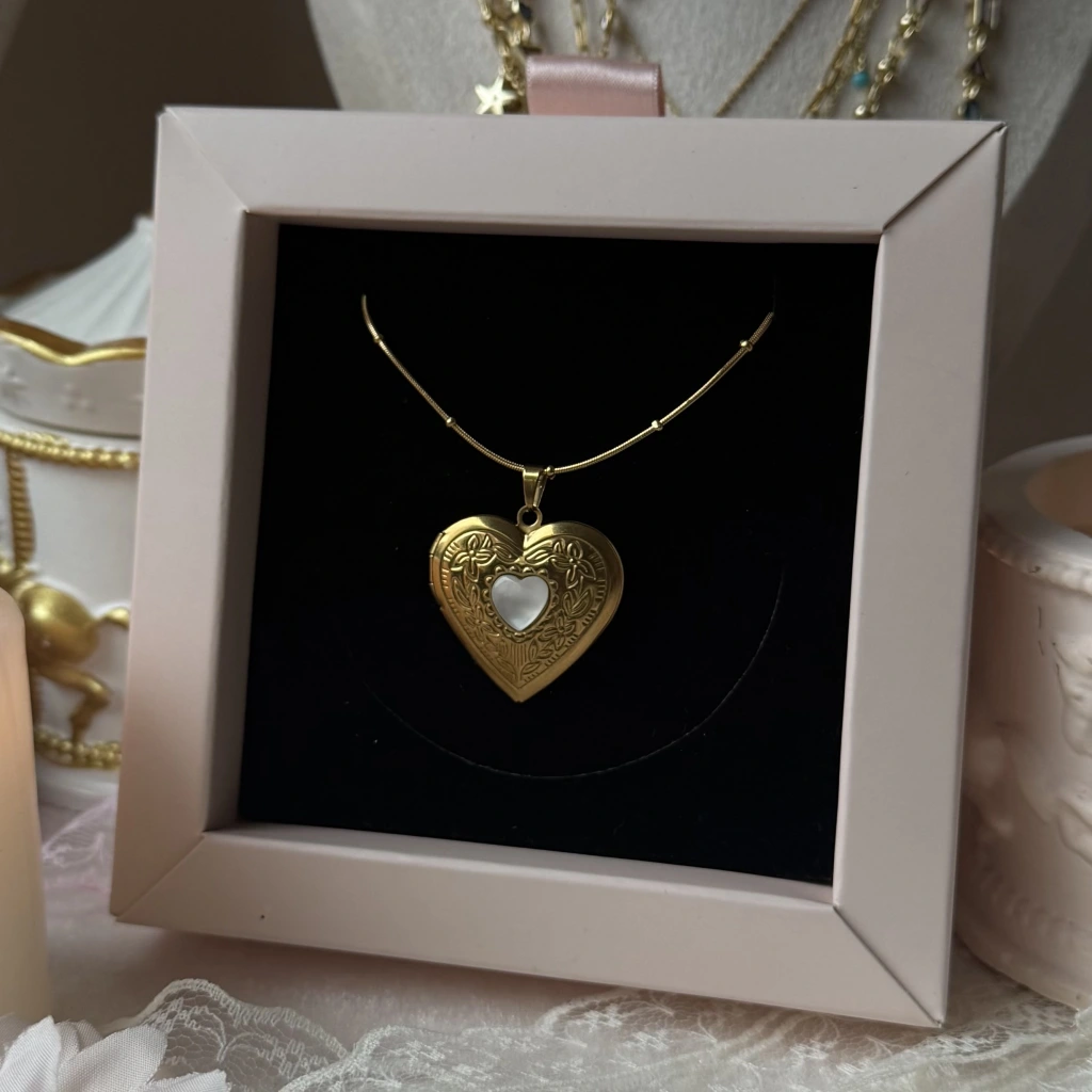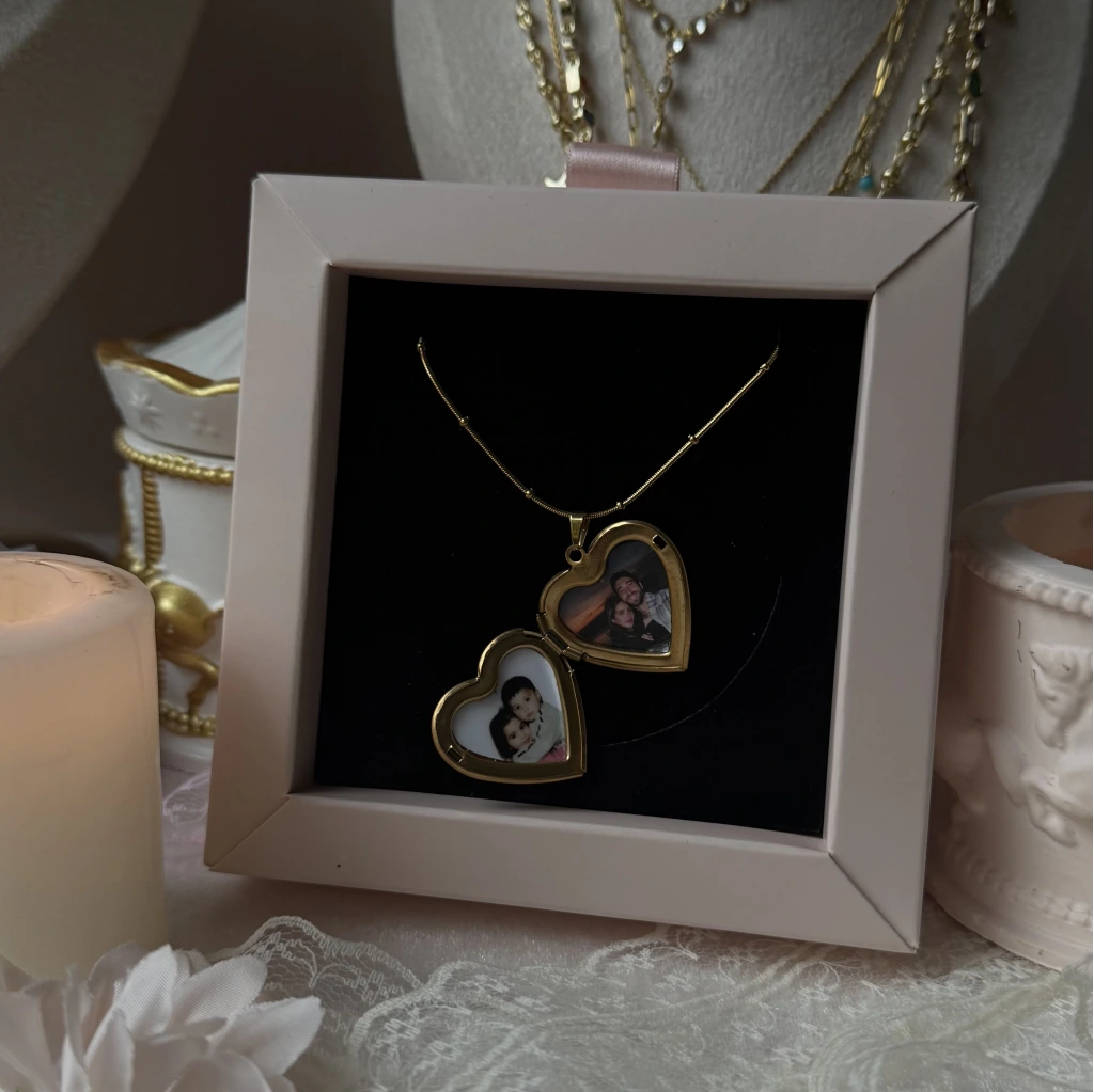 • Çift Fotoğraflı İşlemeli Kapaklı Kalp Kolye | Çelik