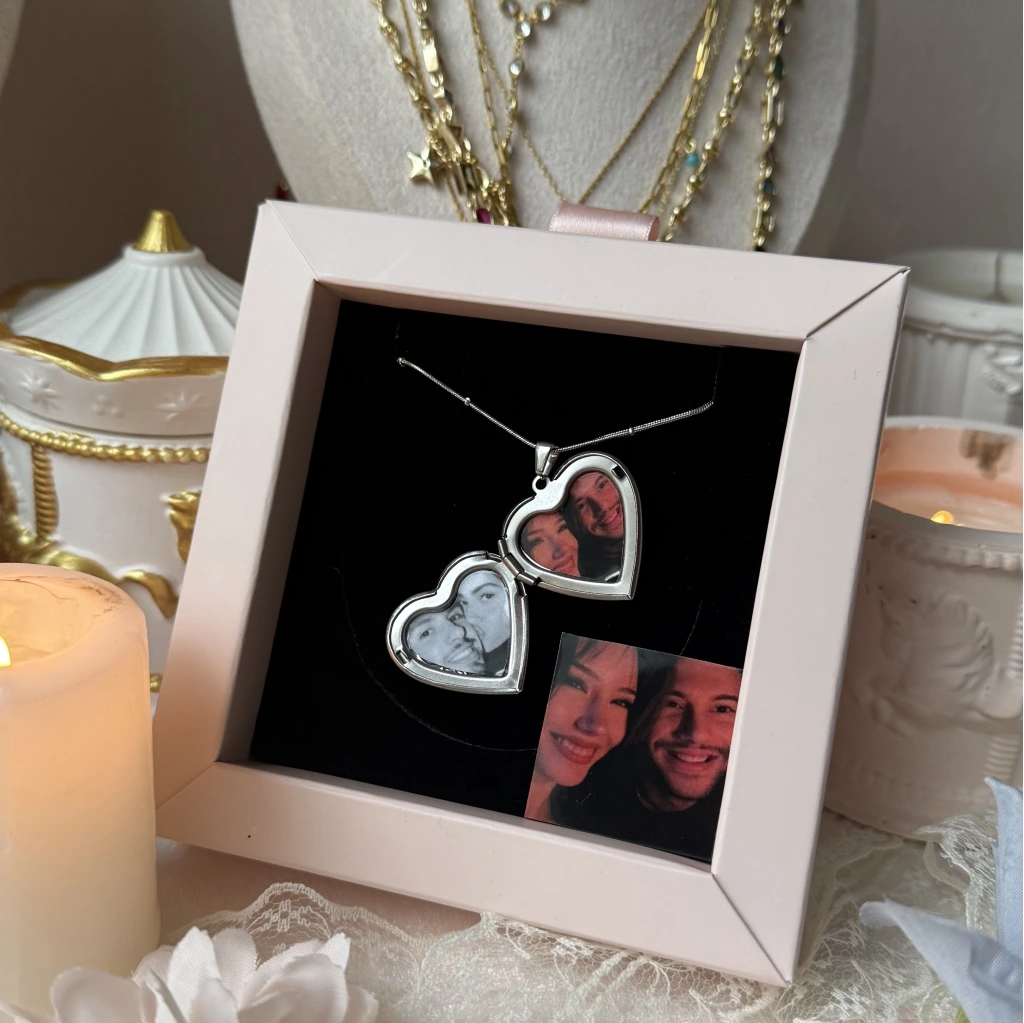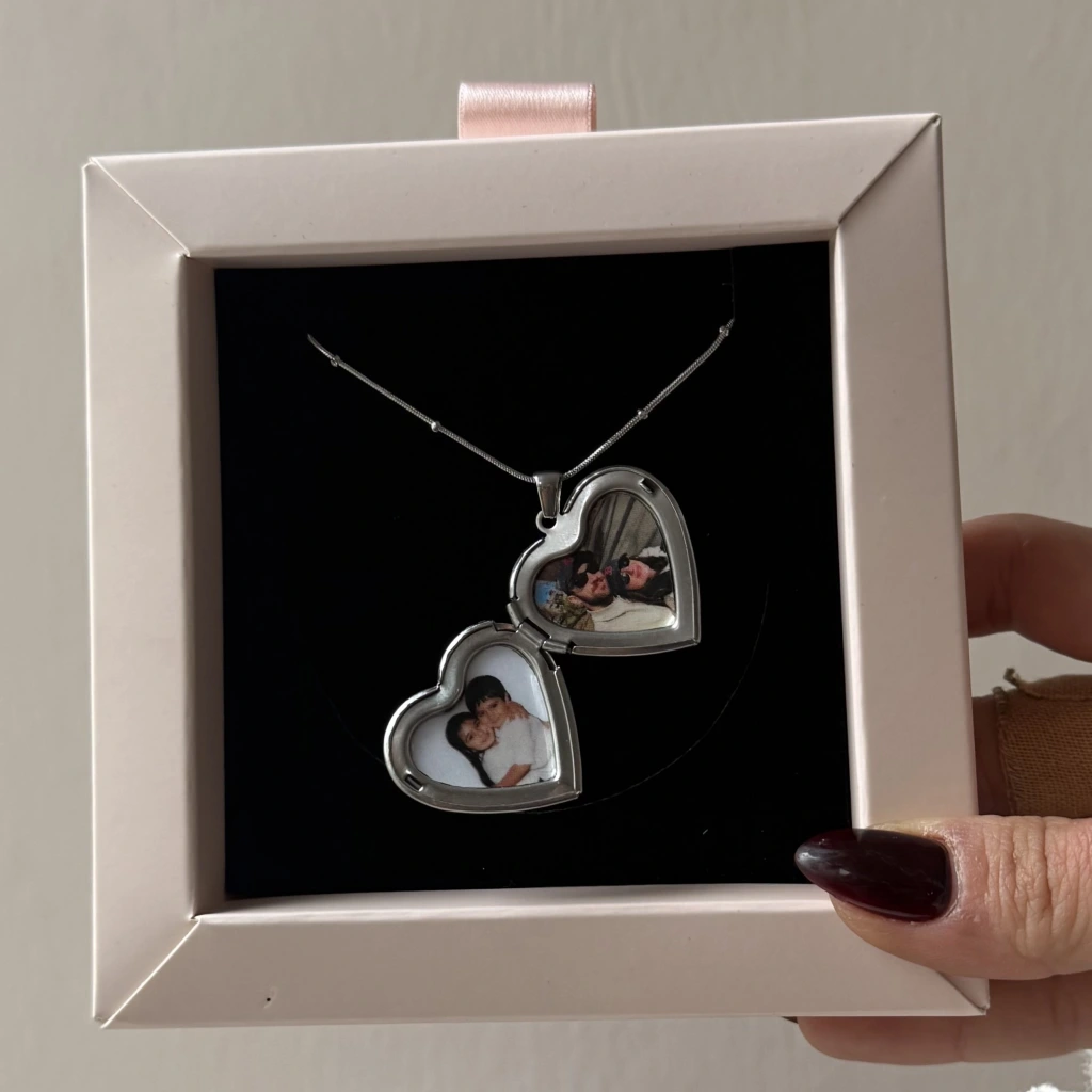 • Çift Fotoğraflı İşlemeli Kapaklı Kalp Kolye | Çelik
