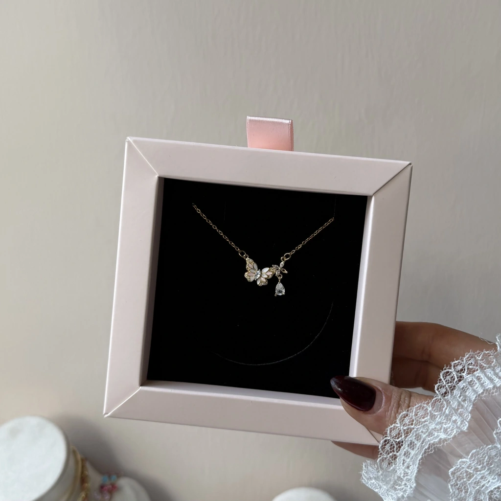 • Taşlı Minimal Kelebek Kolye