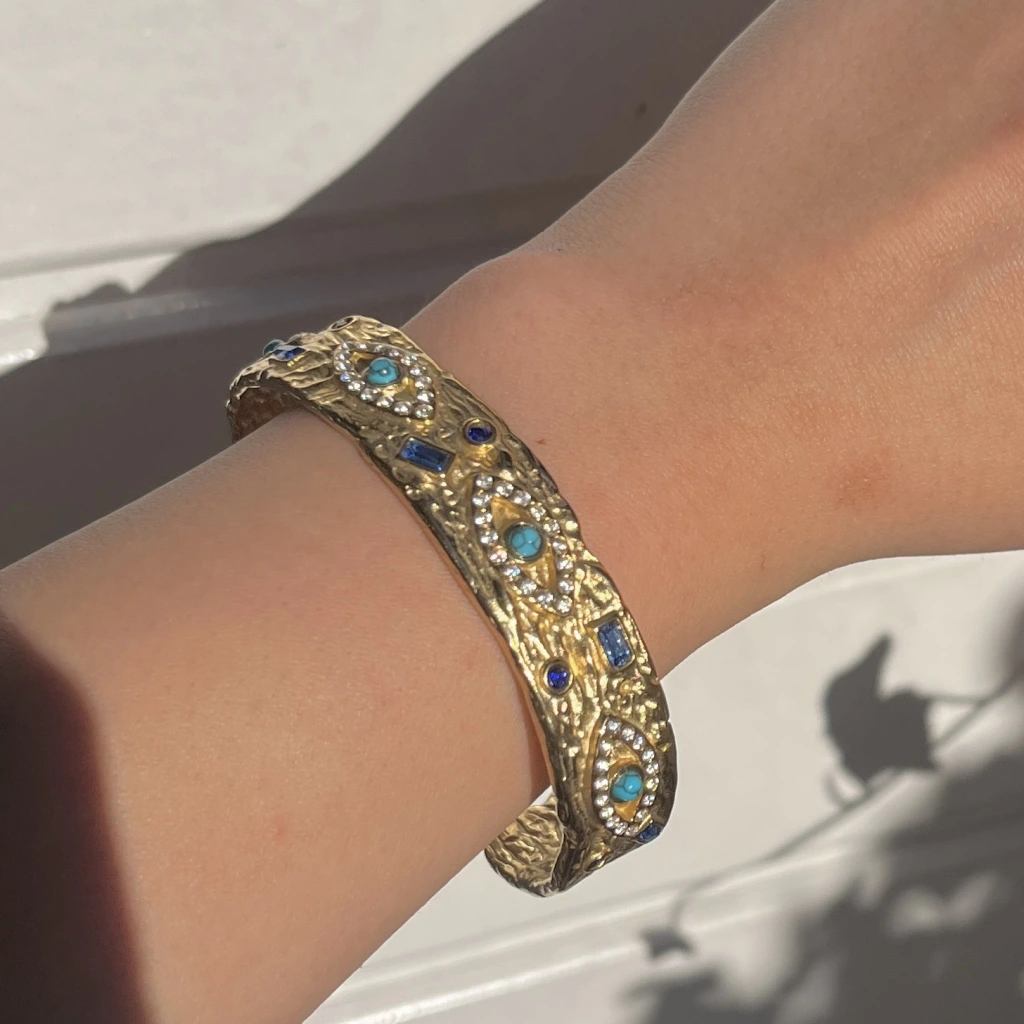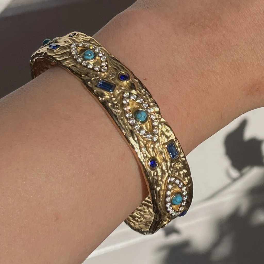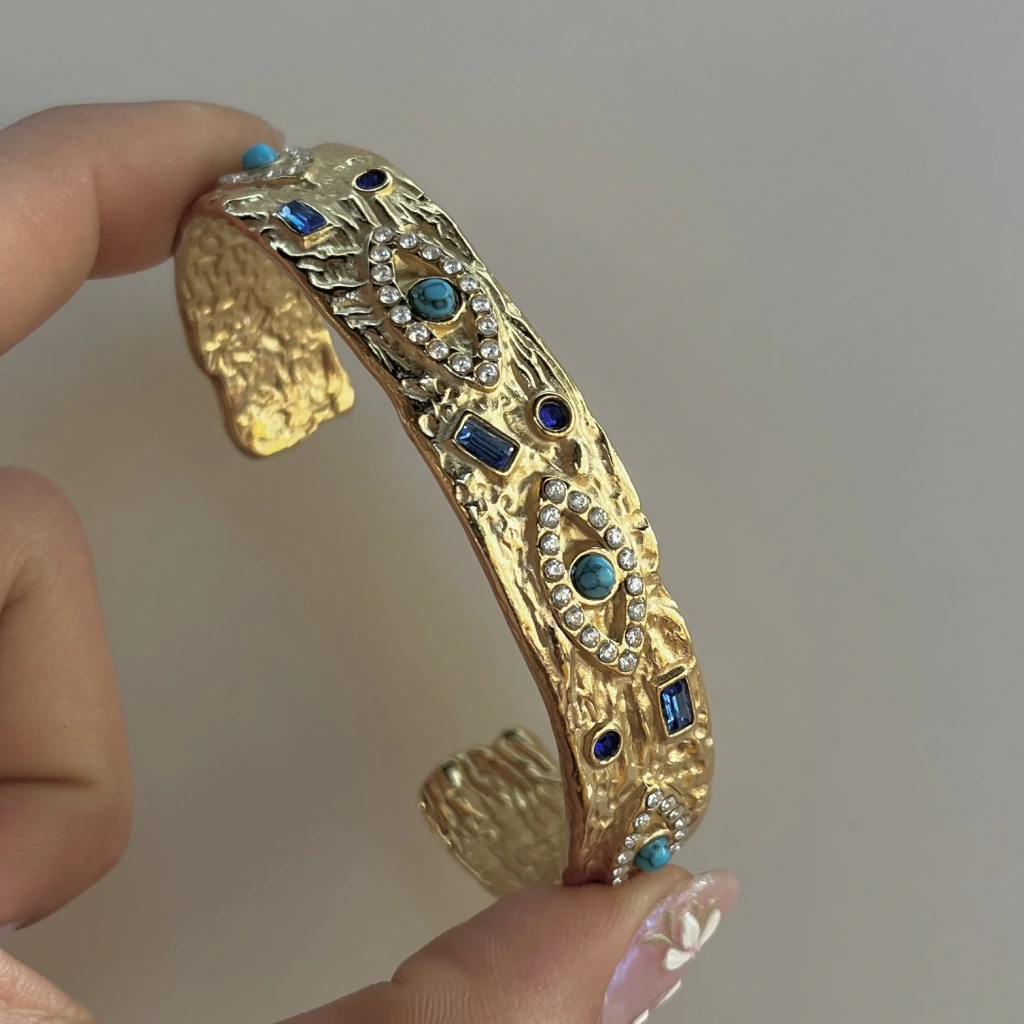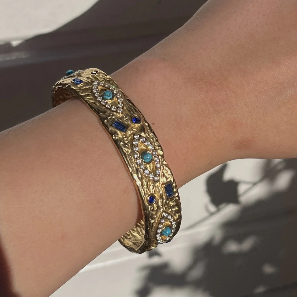 • Taşlı ve Göz Motifli Vintage Kelepçe Bileklik I Çelik