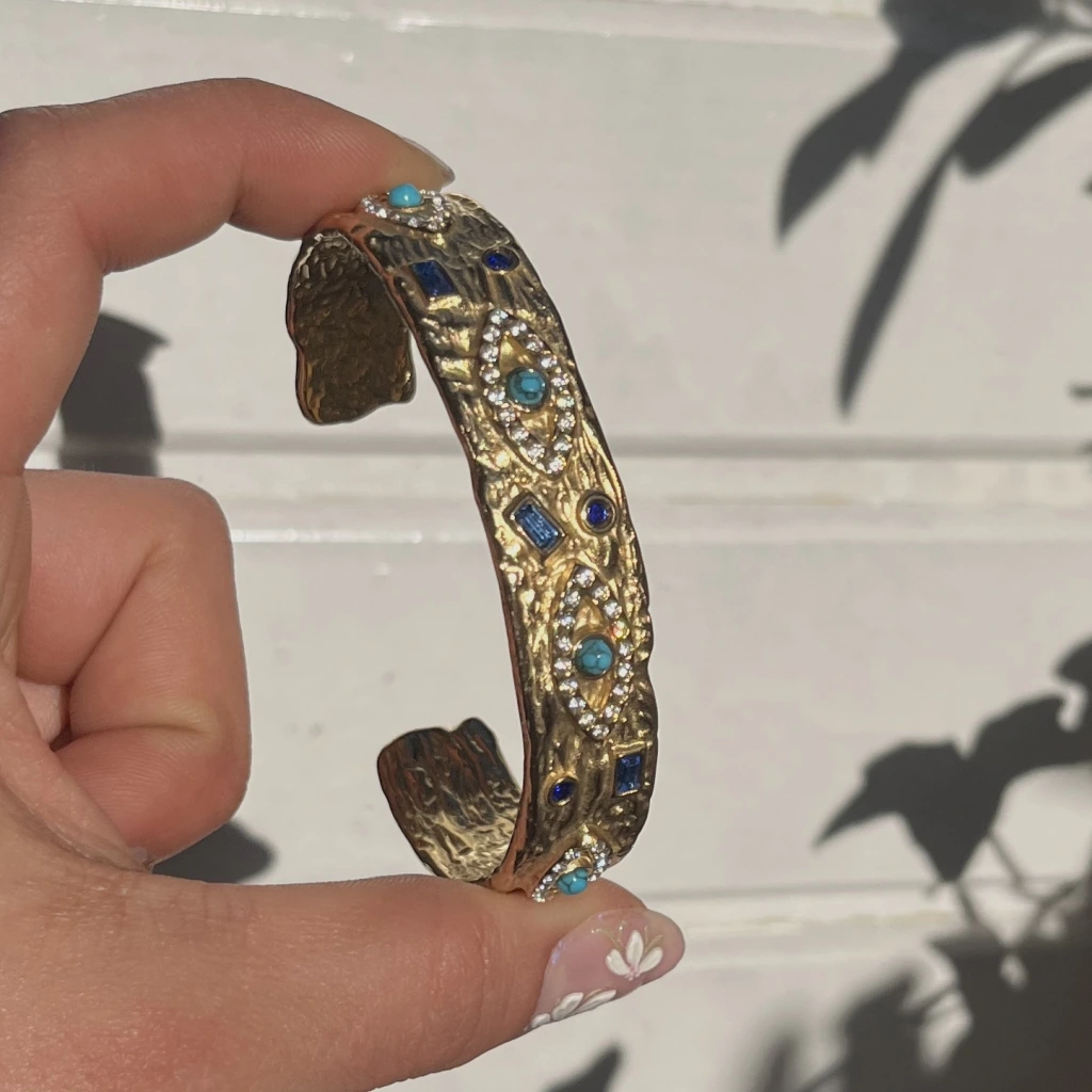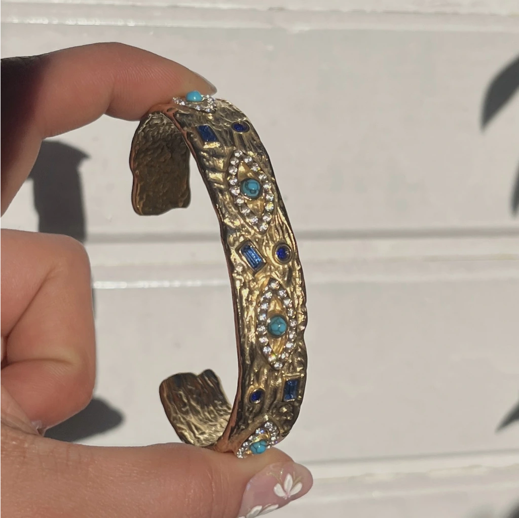 Turkuaz Taşlı ve Göz Motifli Vintage Kelepçe Bileklik